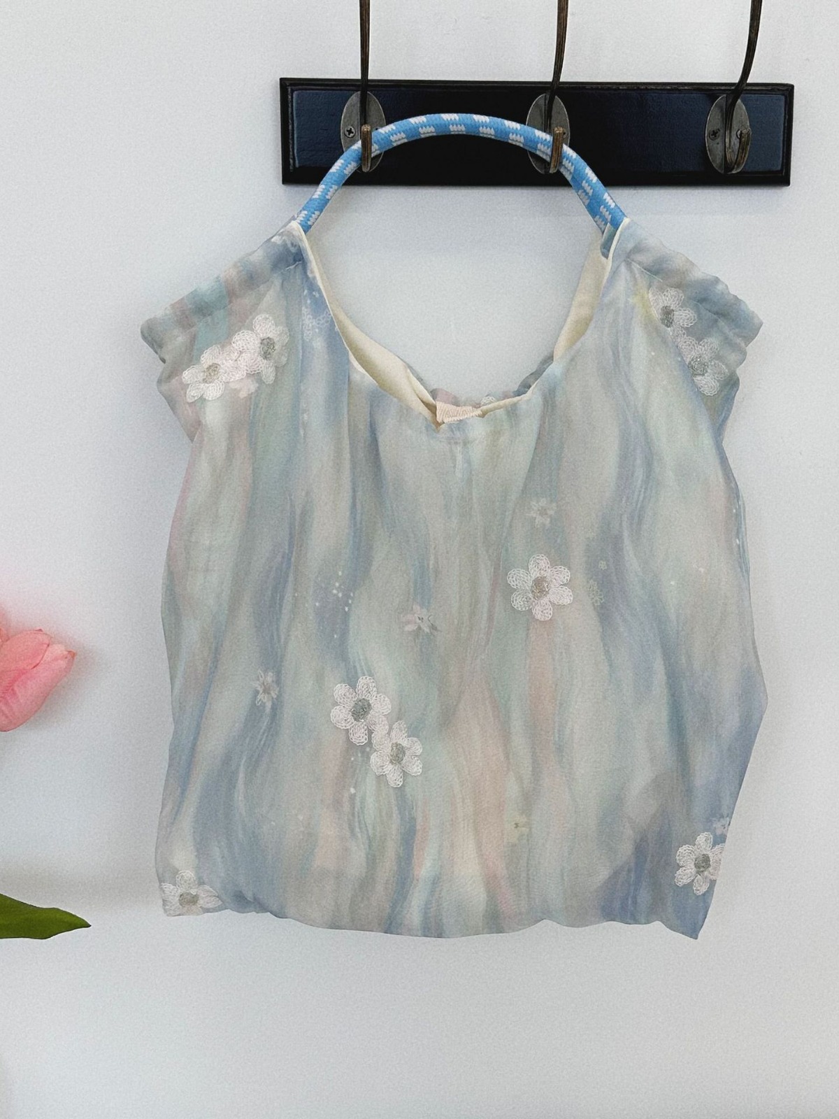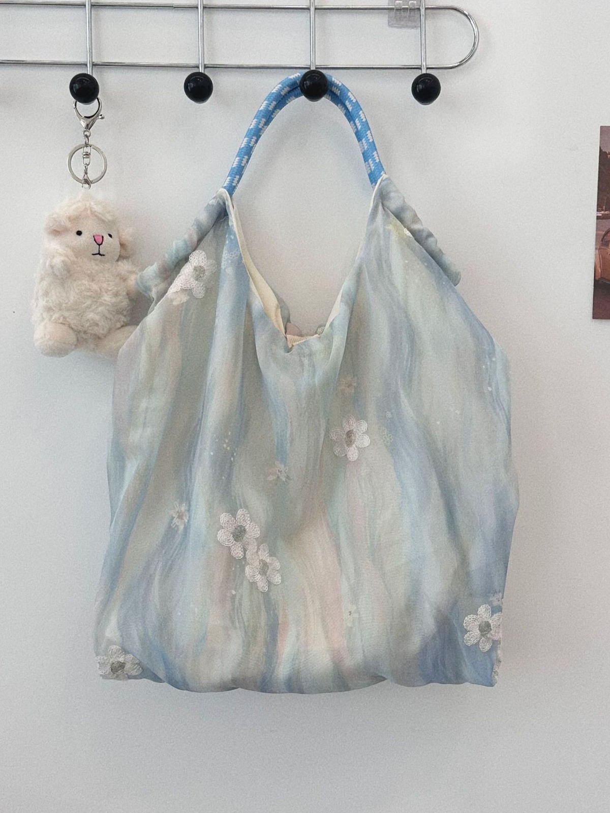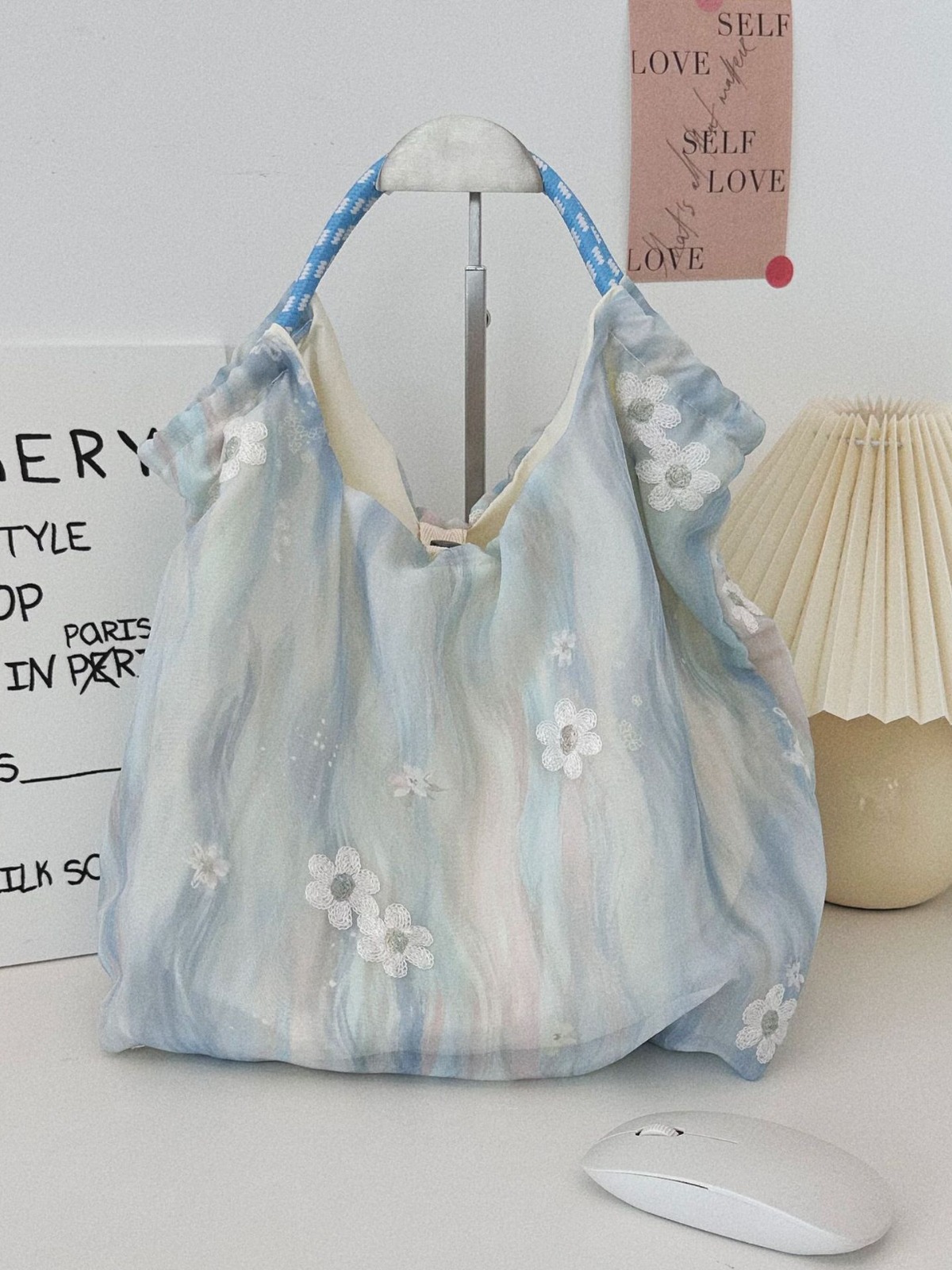 中国风薄纱刺绣小清新通勤手提包文艺帆布袋旅行度假单肩包