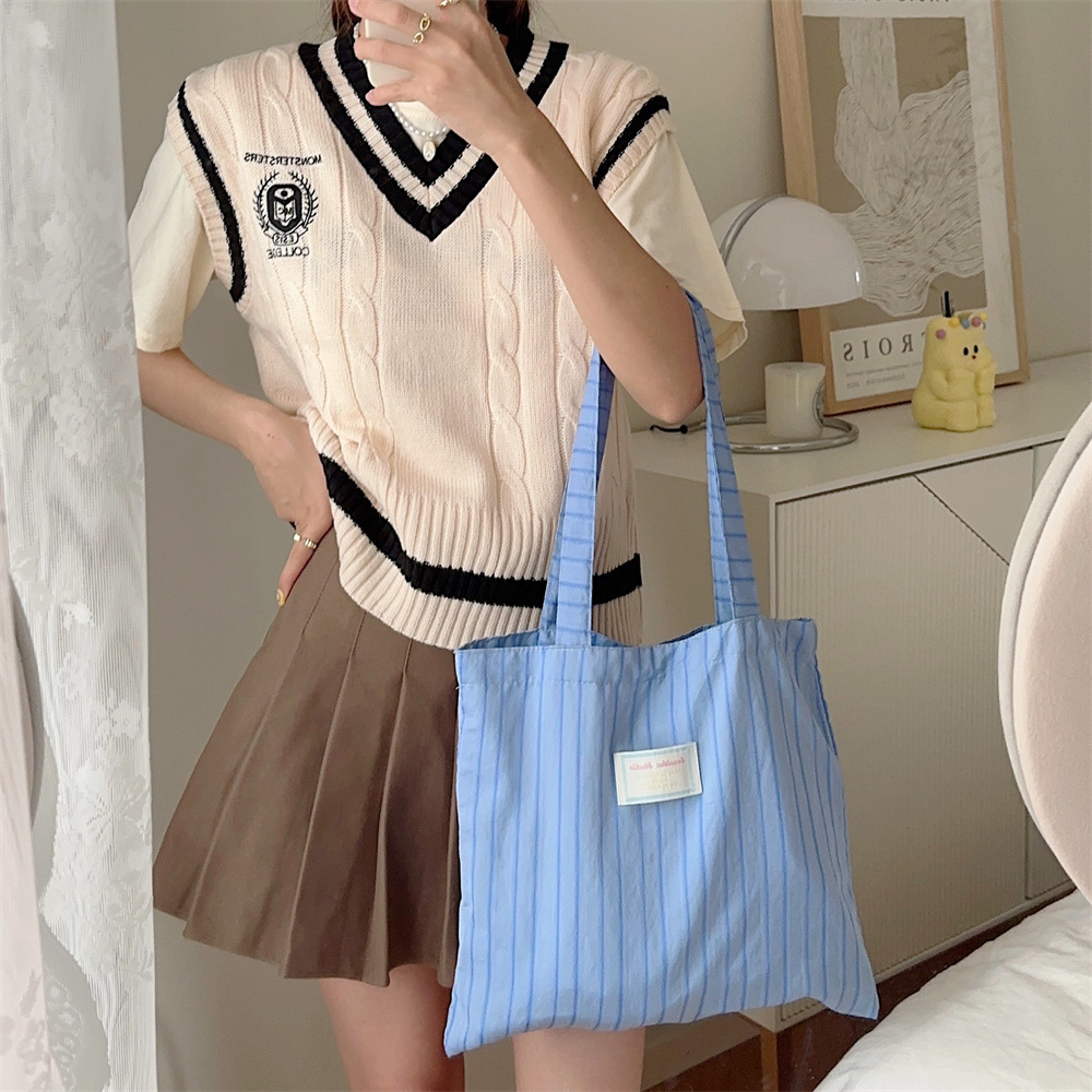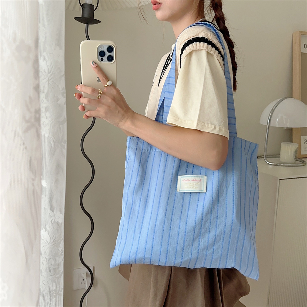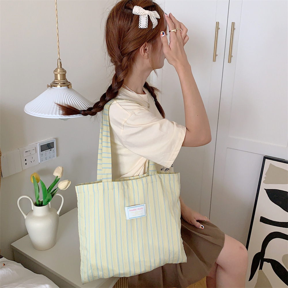 撞色条纹帆布包简约通勤托特包学生大容量单肩包手提包休闲