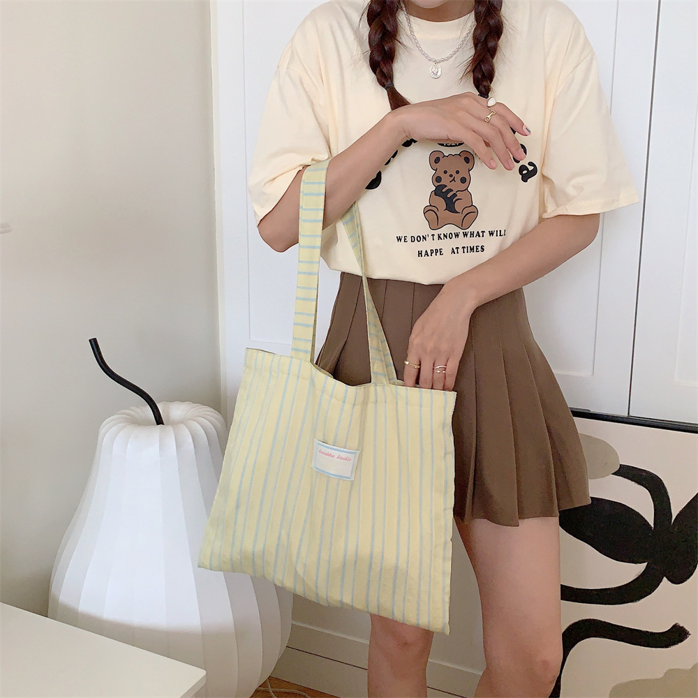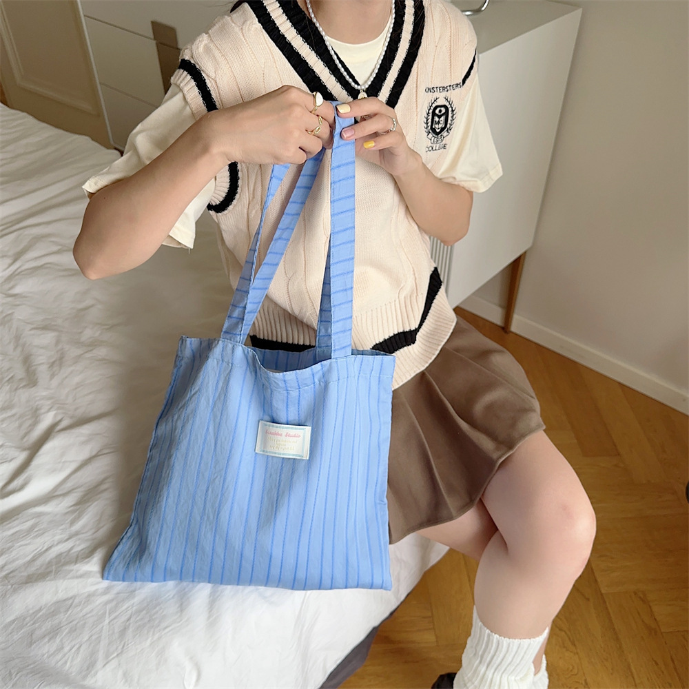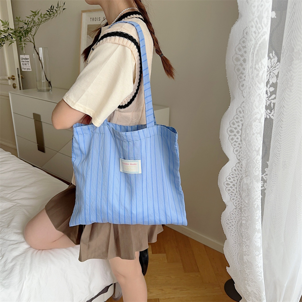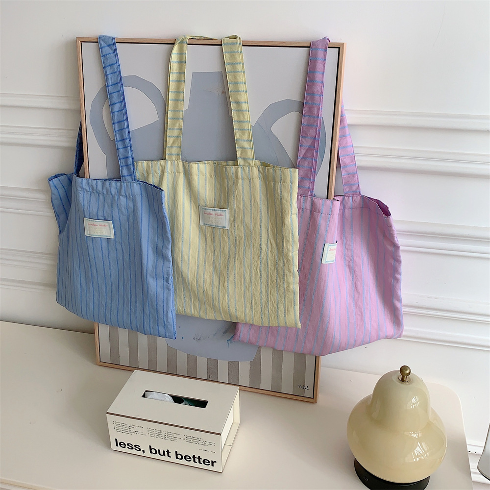 撞色条纹帆布包简约通勤托特包学生大容量单肩包手提包休闲