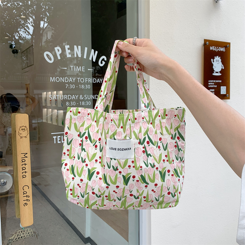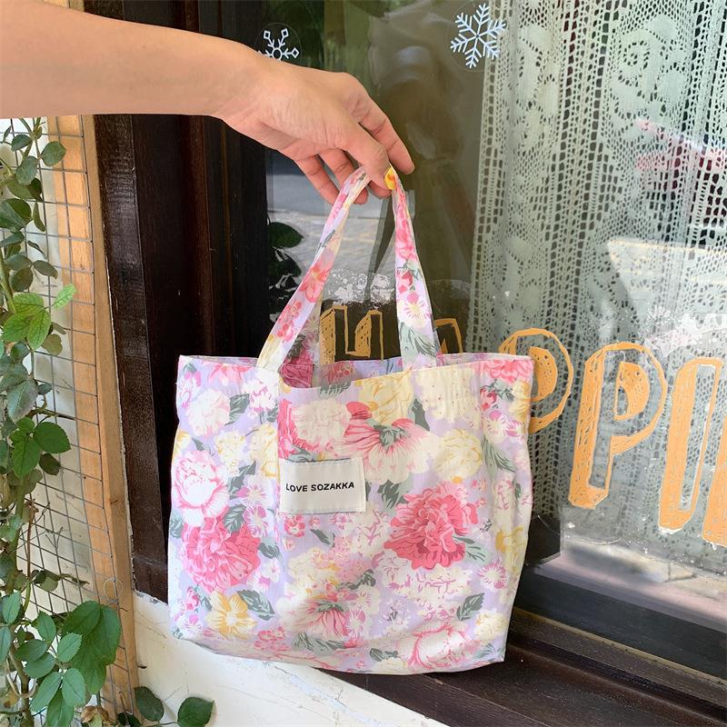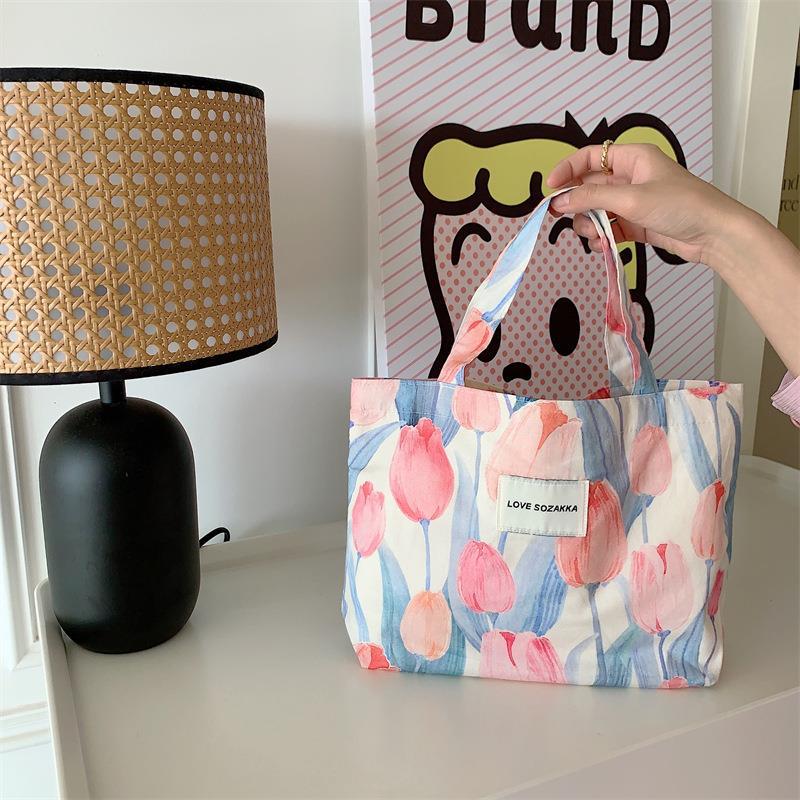 复古油画花朵手提包杂物收纳袋女士可爱便当包文艺手拎袋