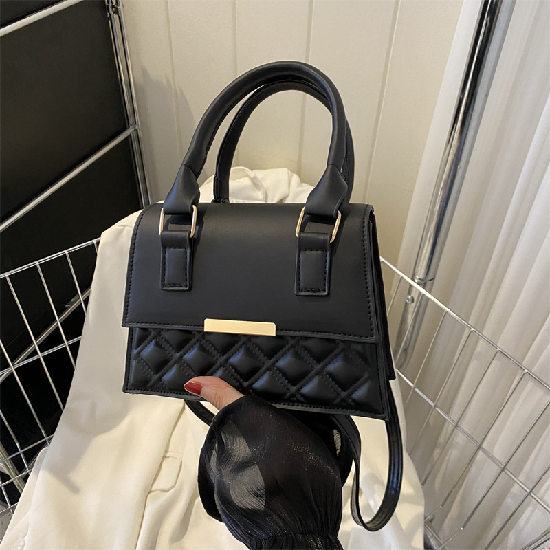 复古纯色时尚菱格绣线手提包夏季韩版百搭休闲包单肩斜挎包潮