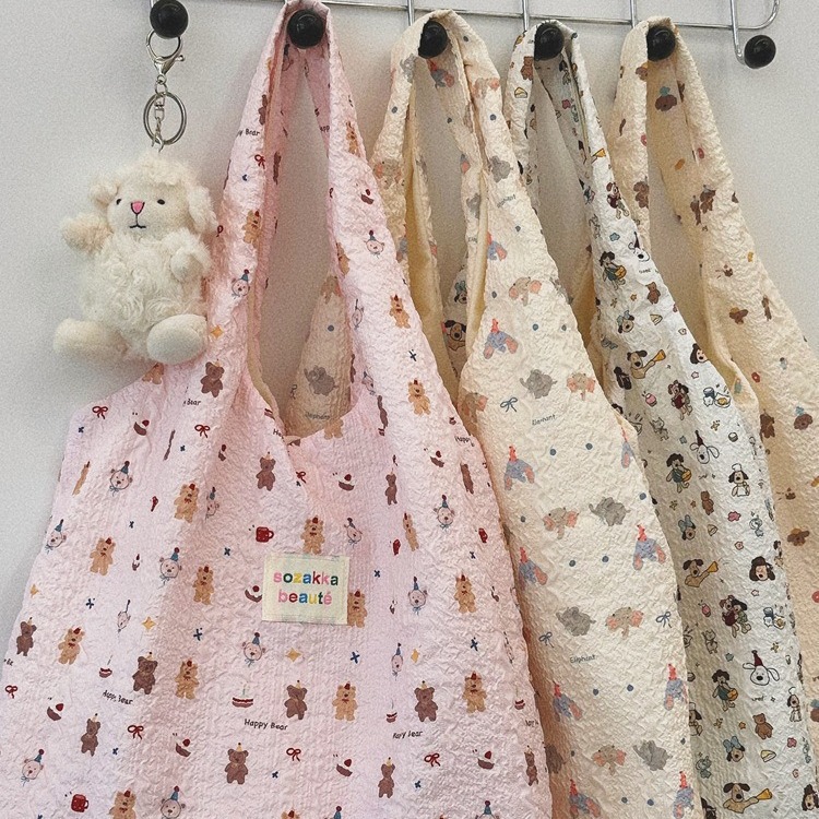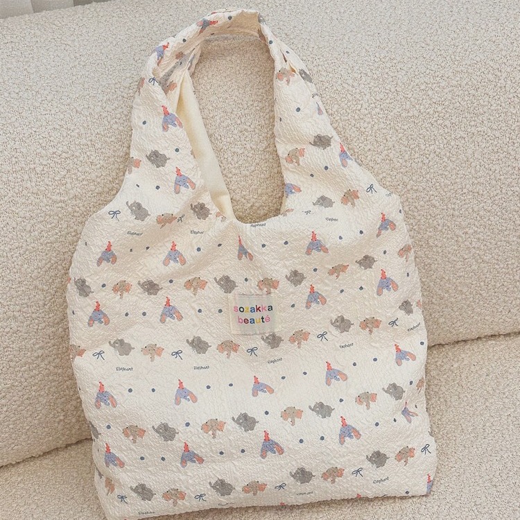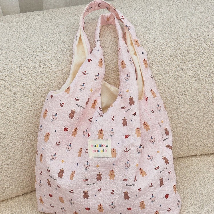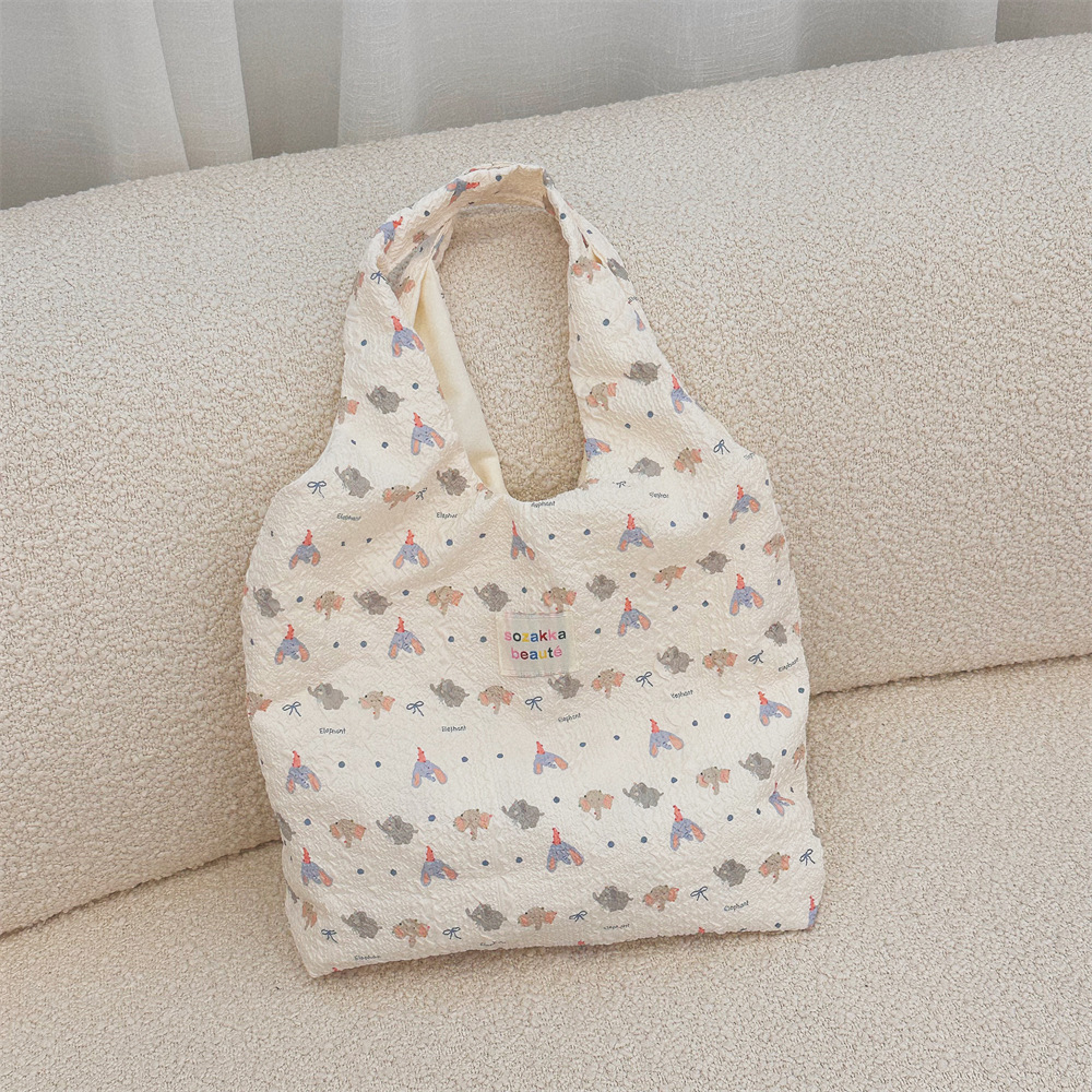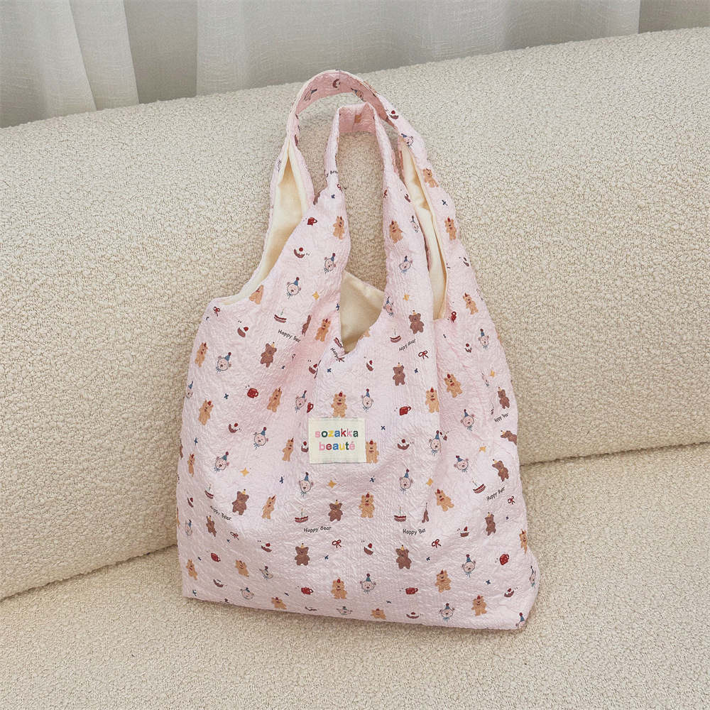 夏季卡通压花帆布包袋女大容量背心包逛街购物袋学生书包