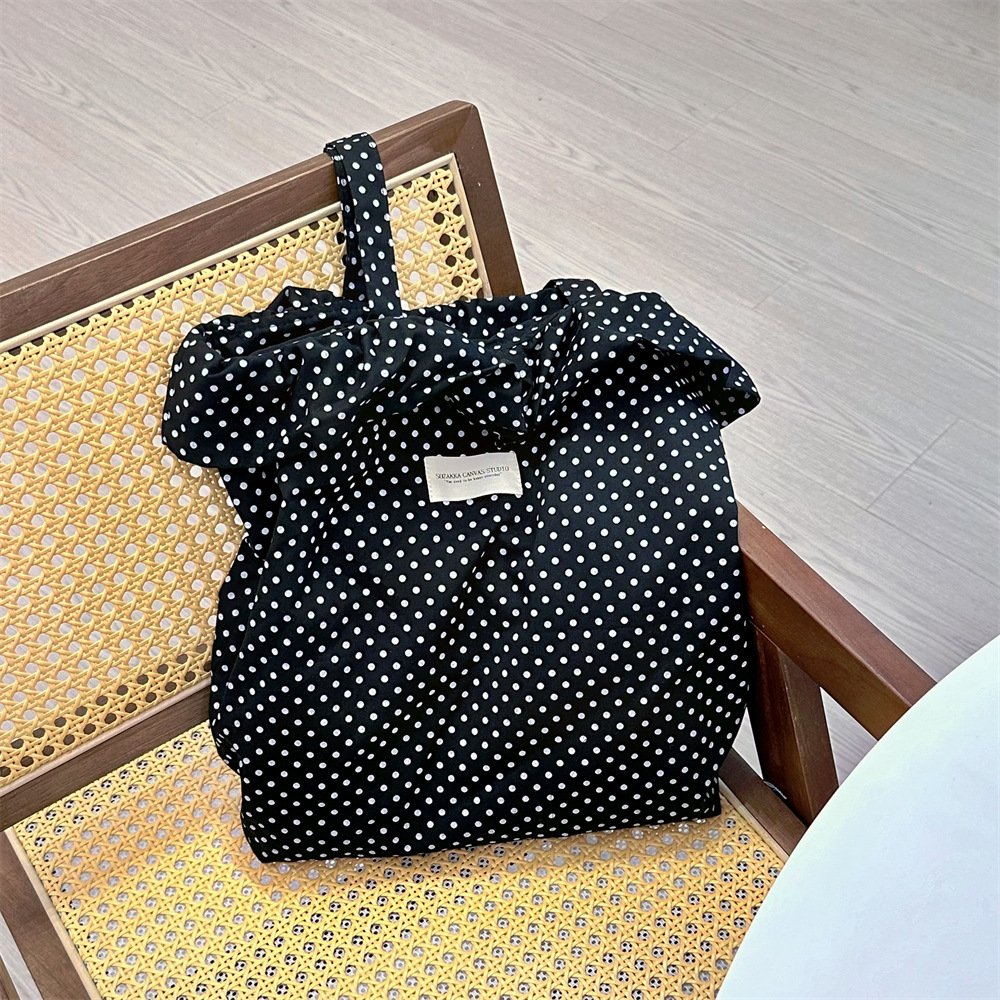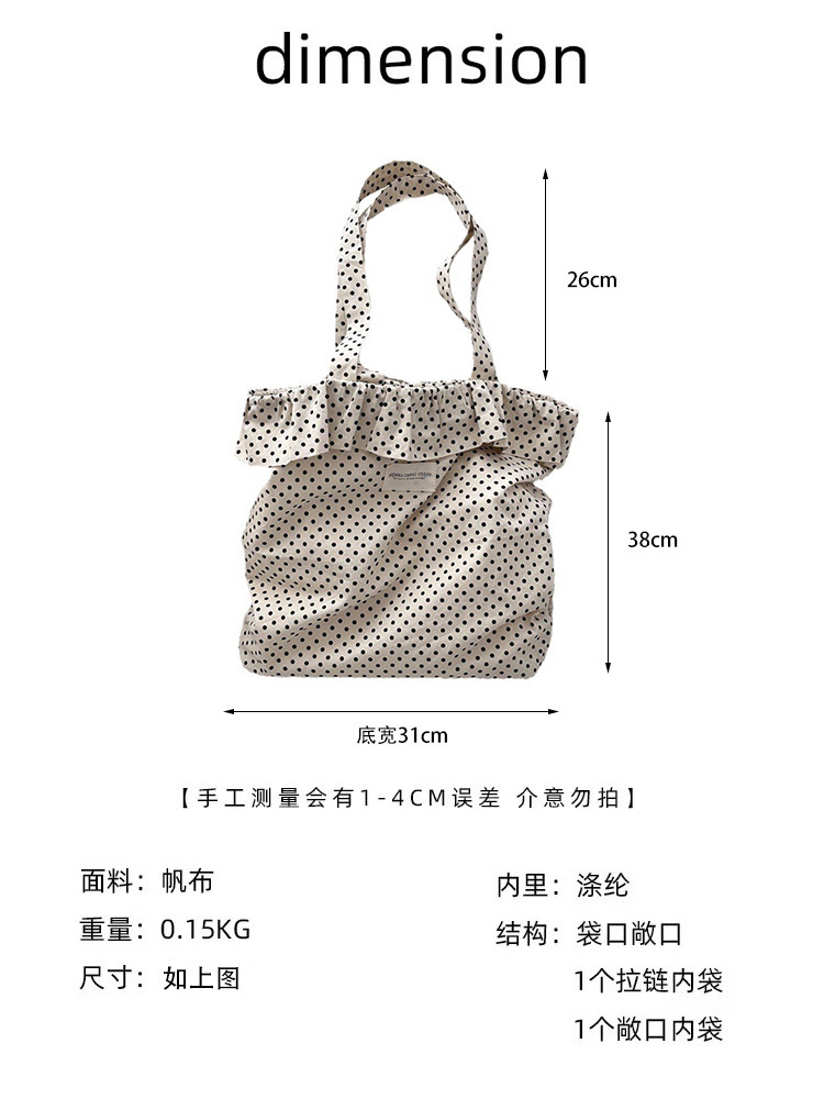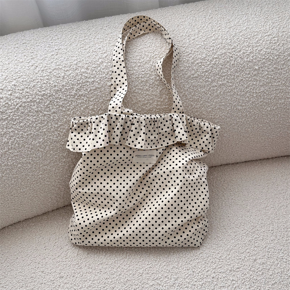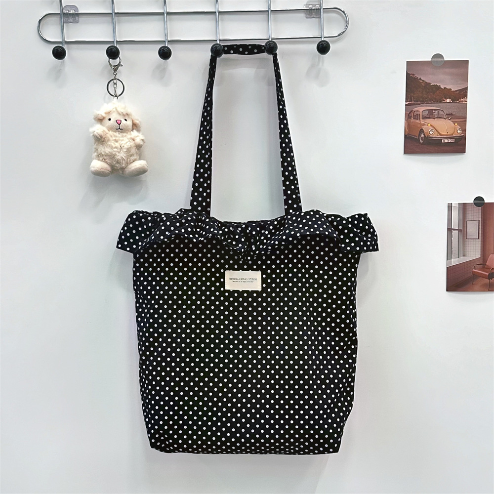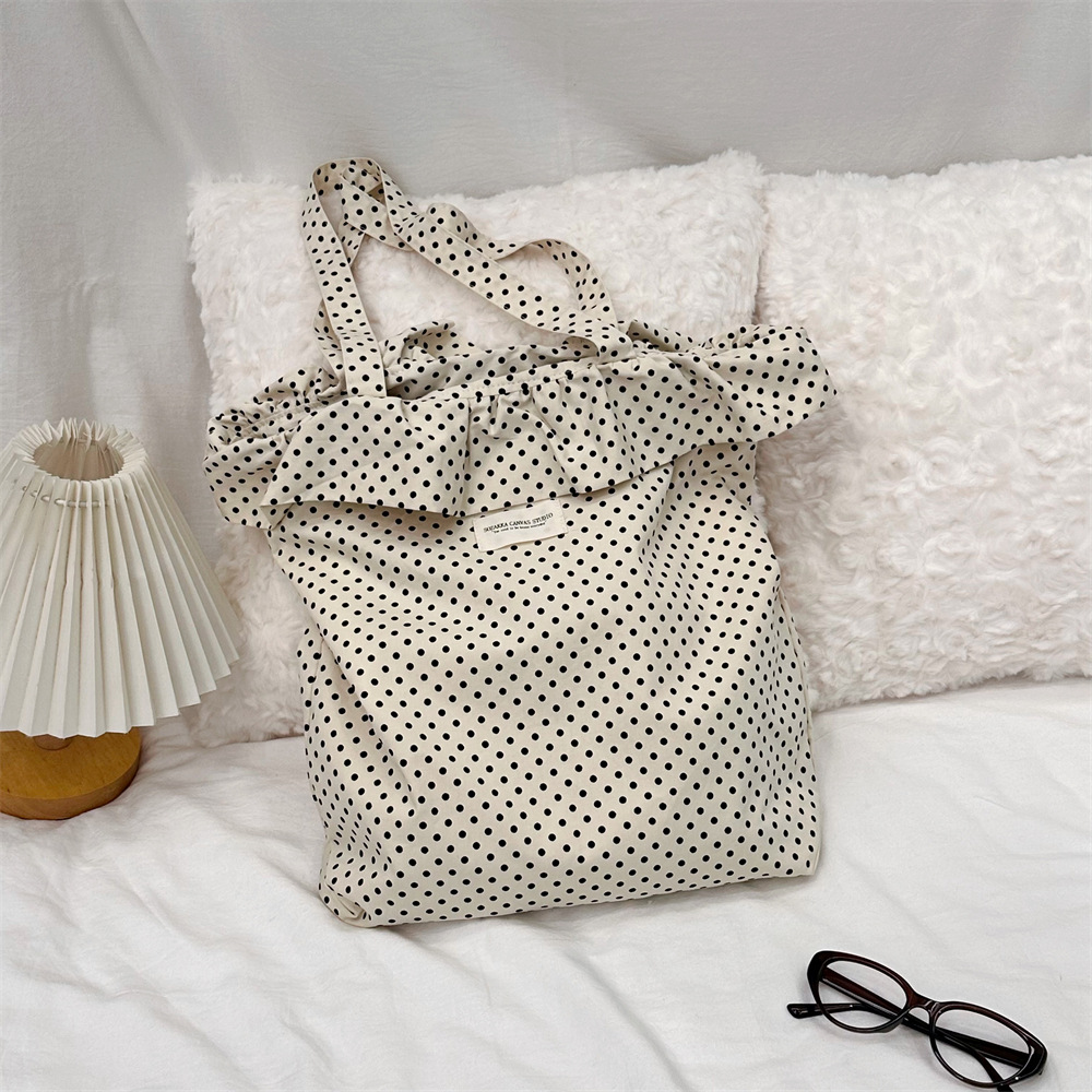 波点花边帆布包女单肩大容量托特包学生上课通勤包