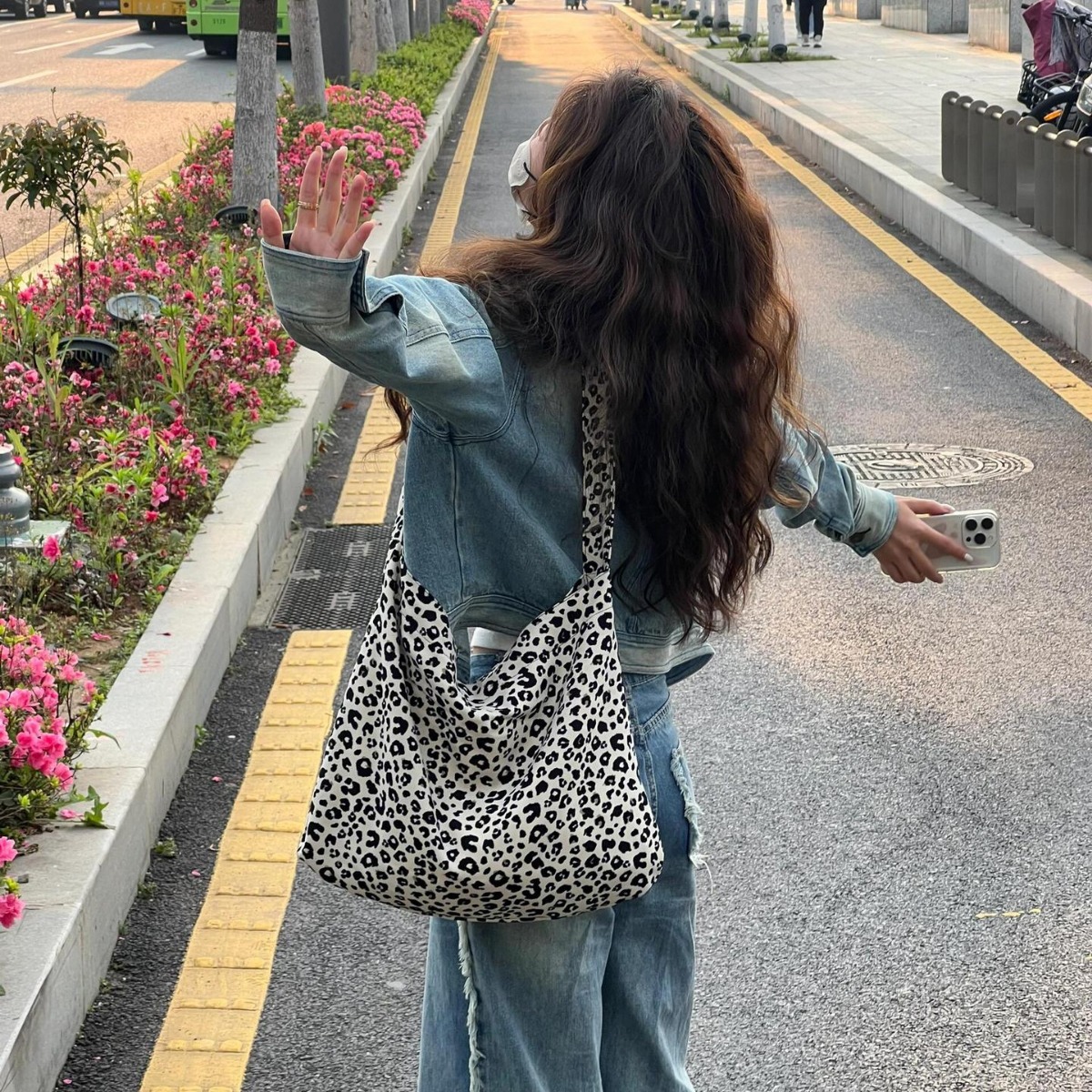 韩国百搭ins风豹纹印花单肩包学生帆布购物袋大容量时尚小众
