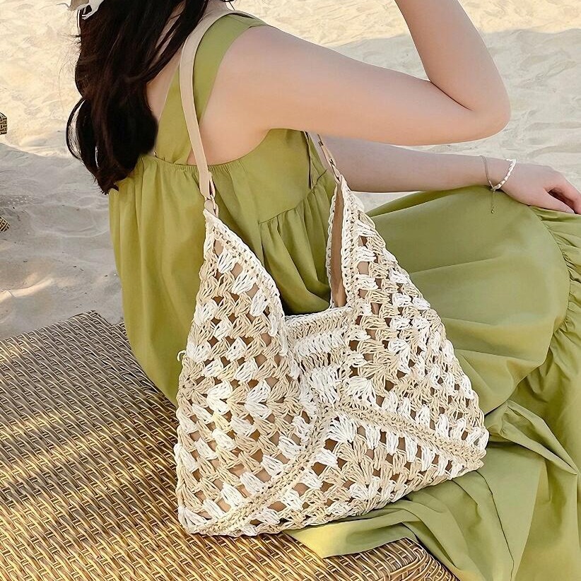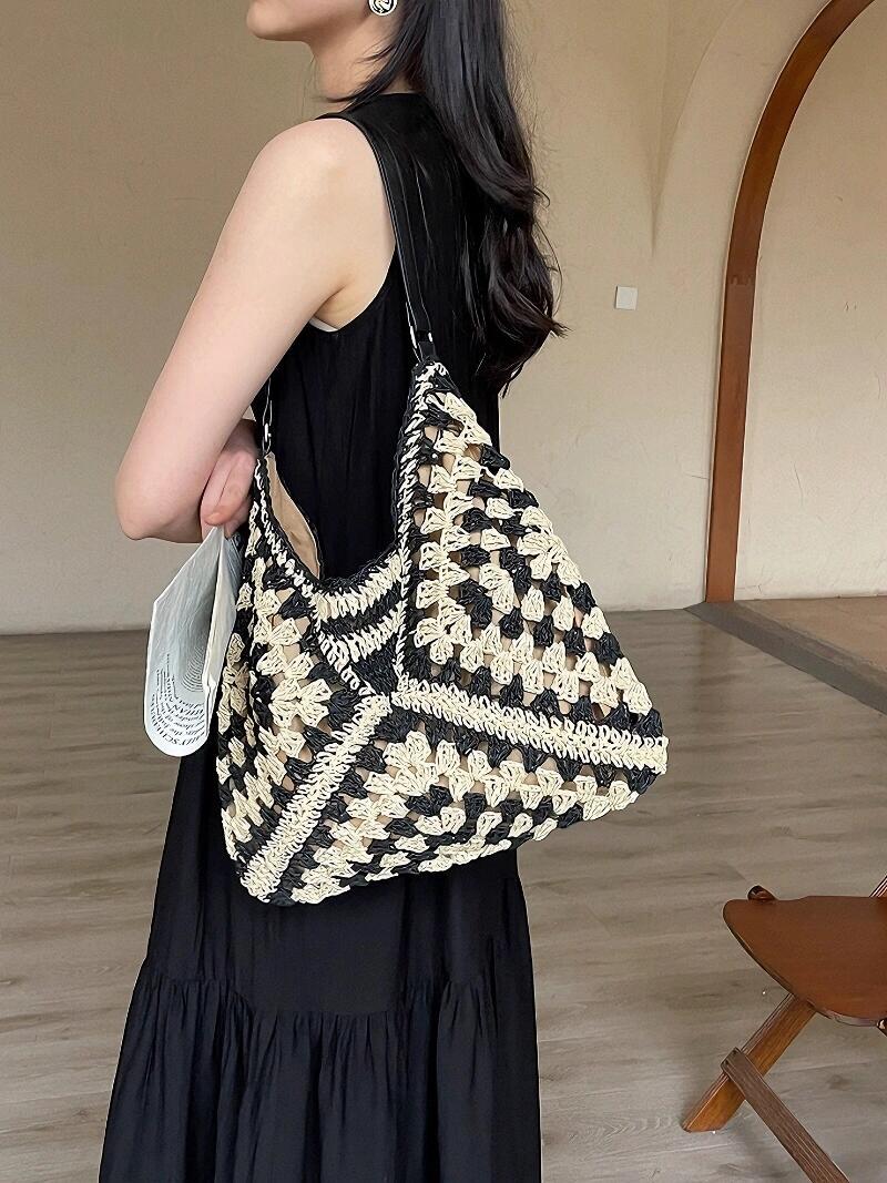 新款大容量编织包小众镂空单肩草编包休闲通勤托特包百搭女包