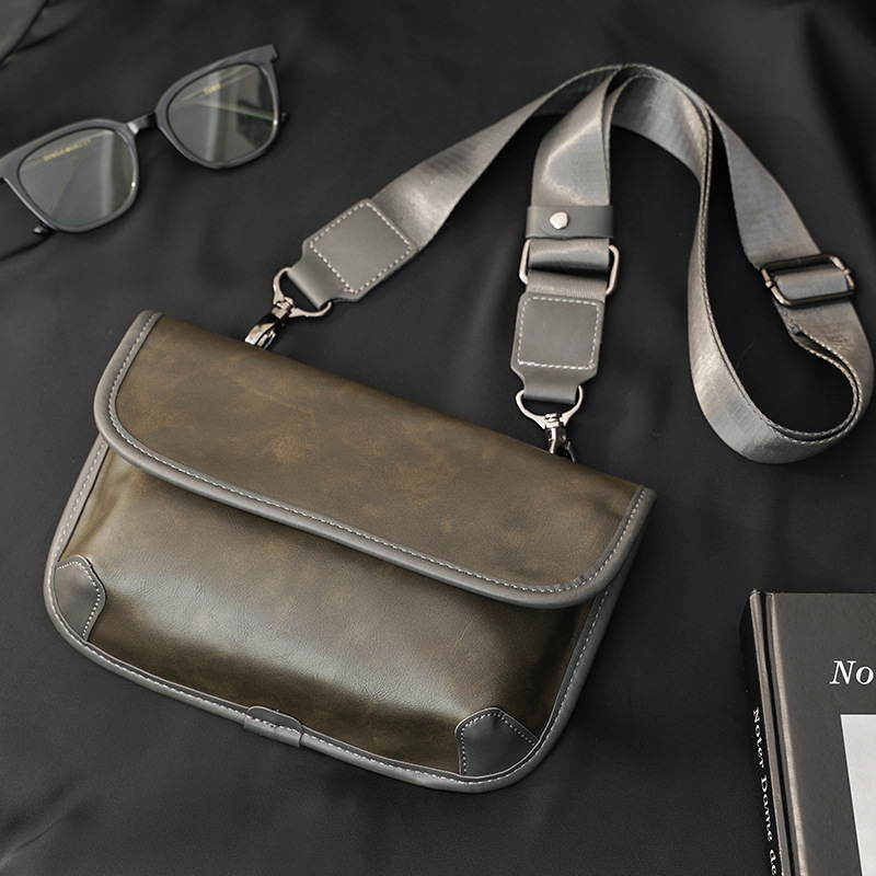 新款爆款ins风单肩包青年骑行斜挎简约时尚大容量男方包PU旅游包