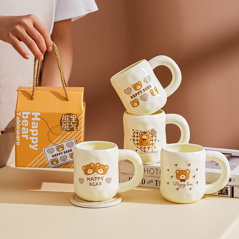 高颜值奶油风小熊陶瓷水杯家用咖啡杯牛奶杯耐高温情侣马克杯