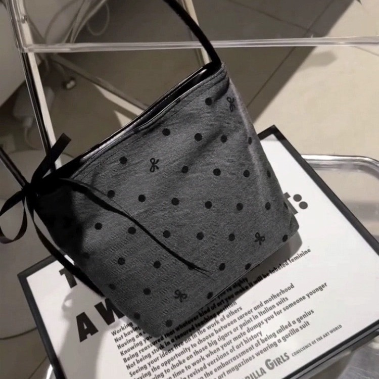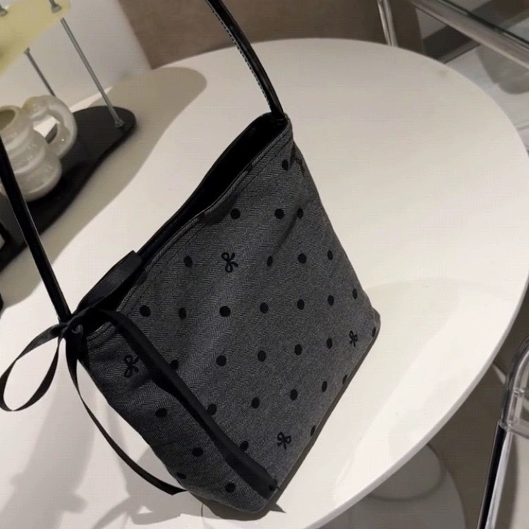 新款小众设计蝴蝶结波点单肩腋下包大容量时尚百搭通勤托特包