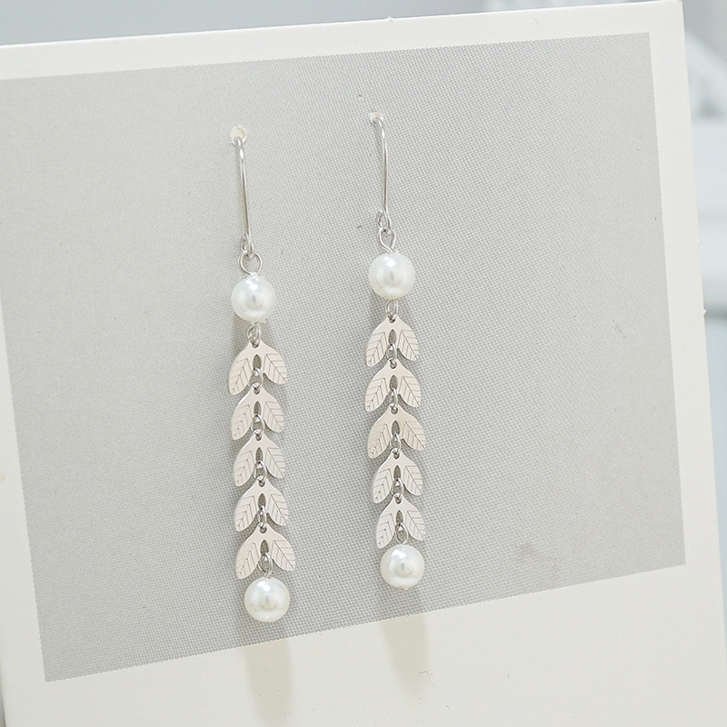 S925纯银韩版气质含羞草长款流苏耳线麦穗珍珠耳环