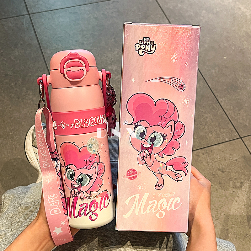 小马宝莉儿童背带水壶卡通可爱保温杯不锈钢水杯女双饮杯生日礼物