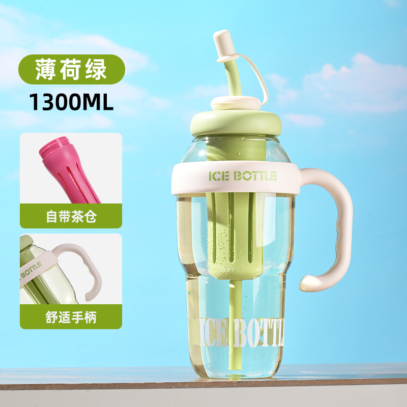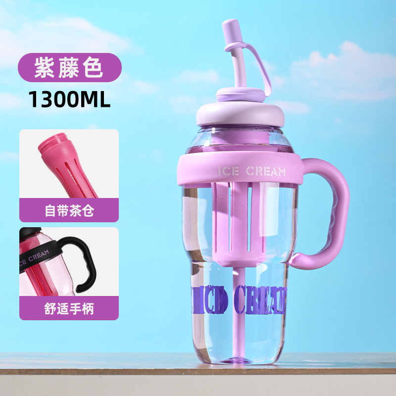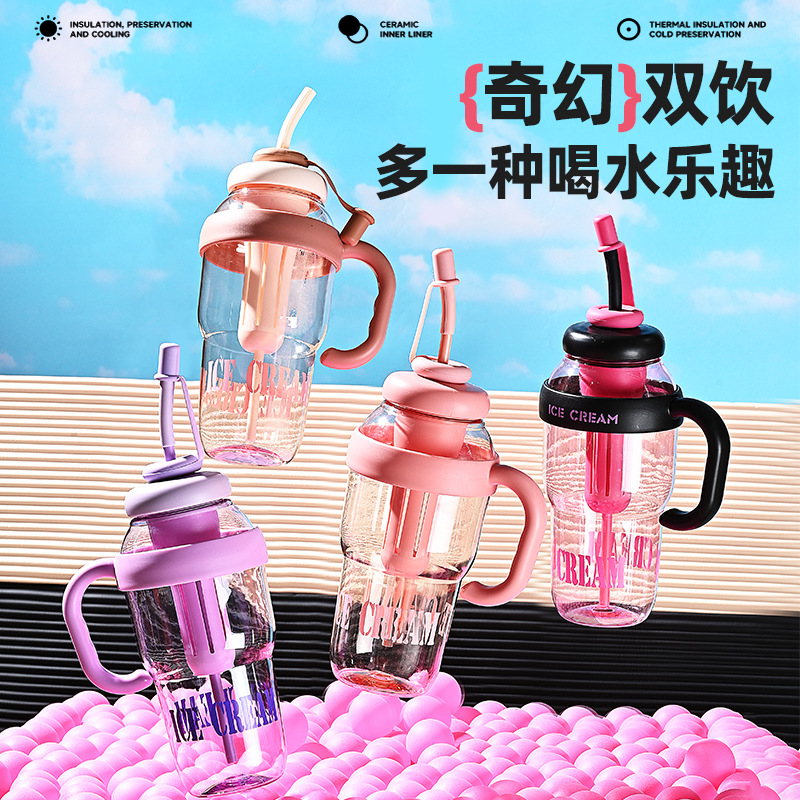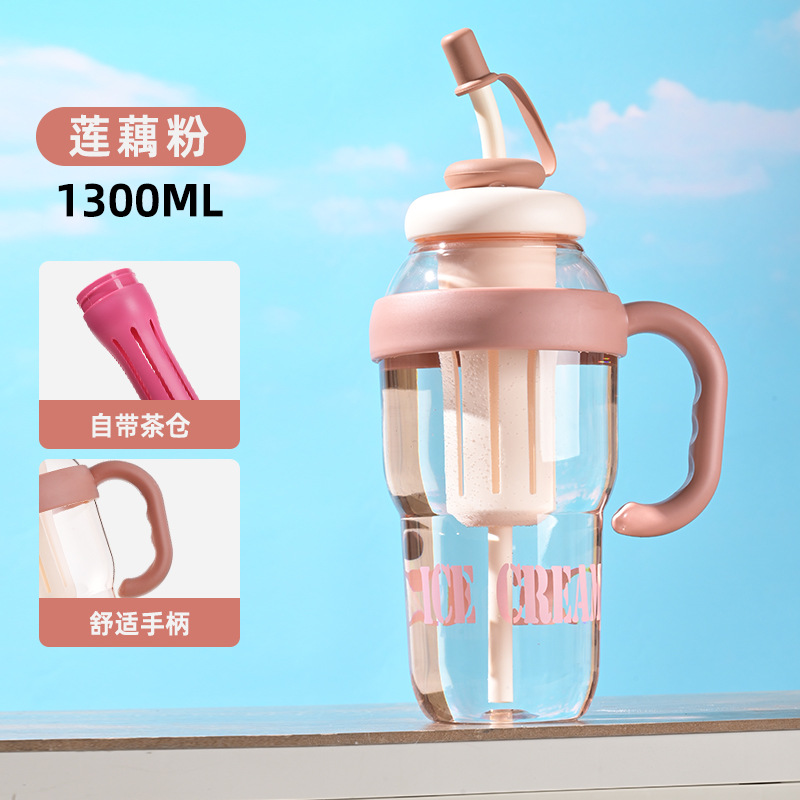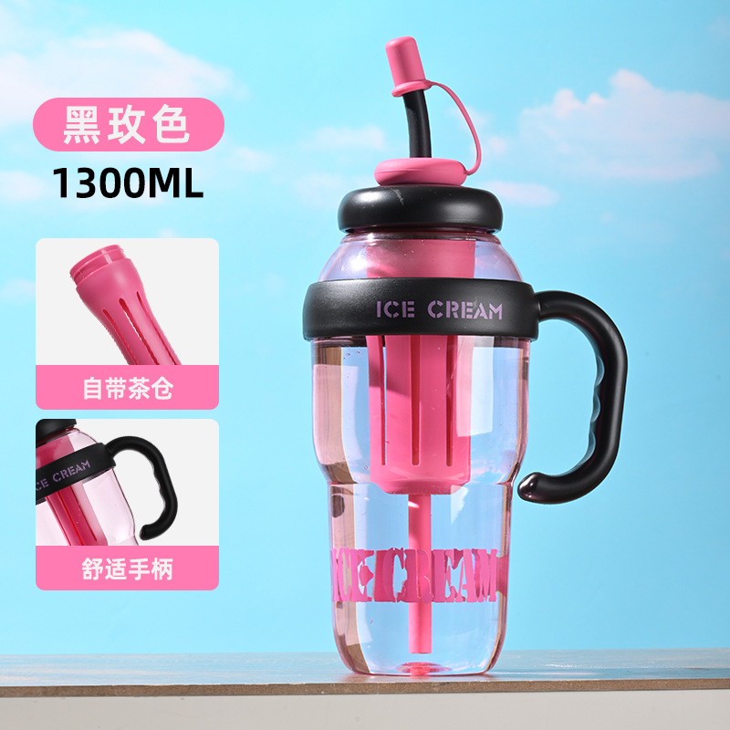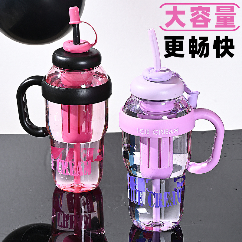 夏季新款高颜值巨无霸吸管杯塑料大肚杯大容量花茶杯带手柄大水壶