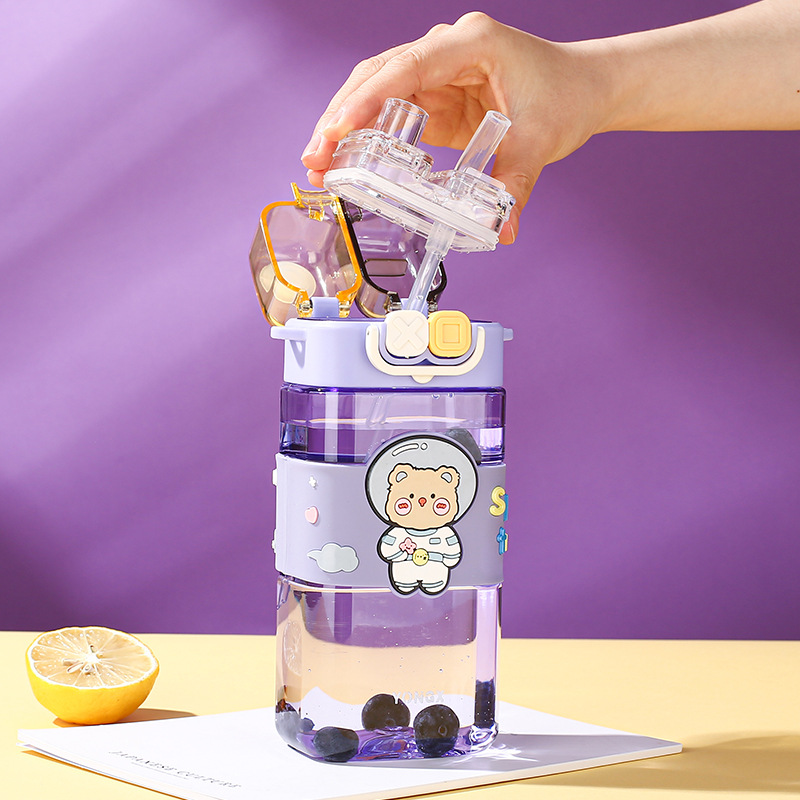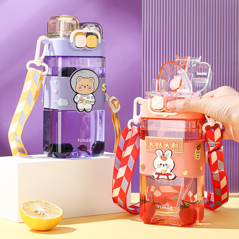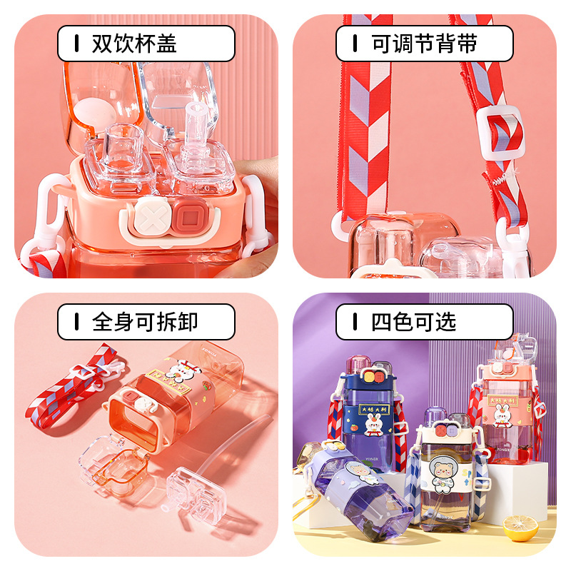 网红塑料杯高颜值大容量儿童水杯批发运动吸管双饮杯夏季便携杯子