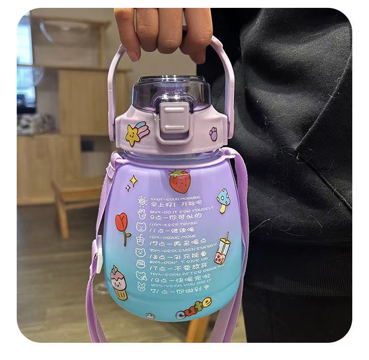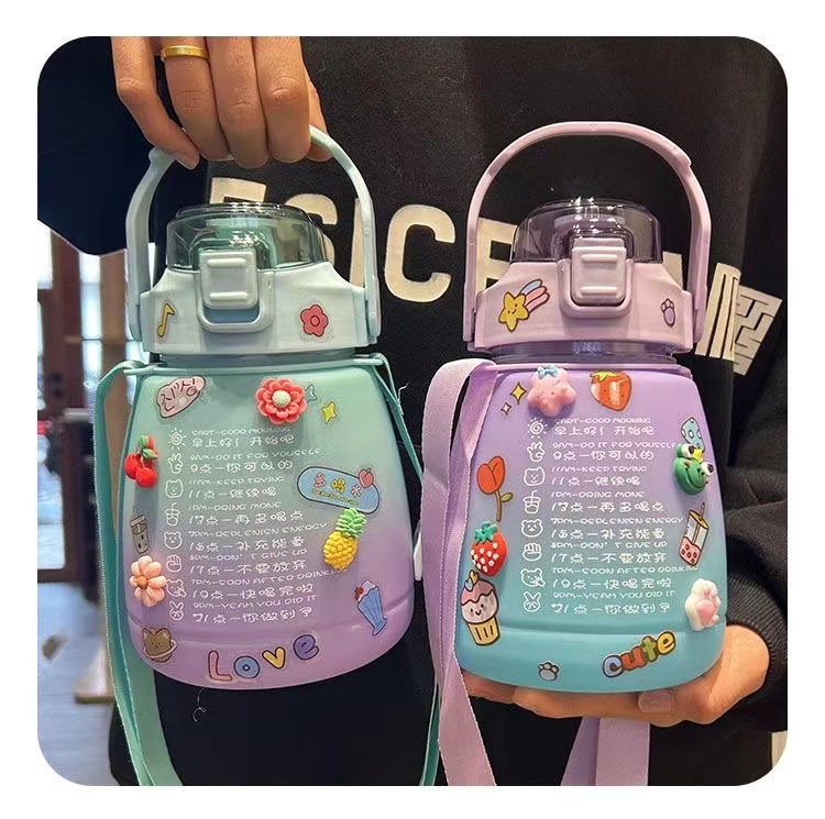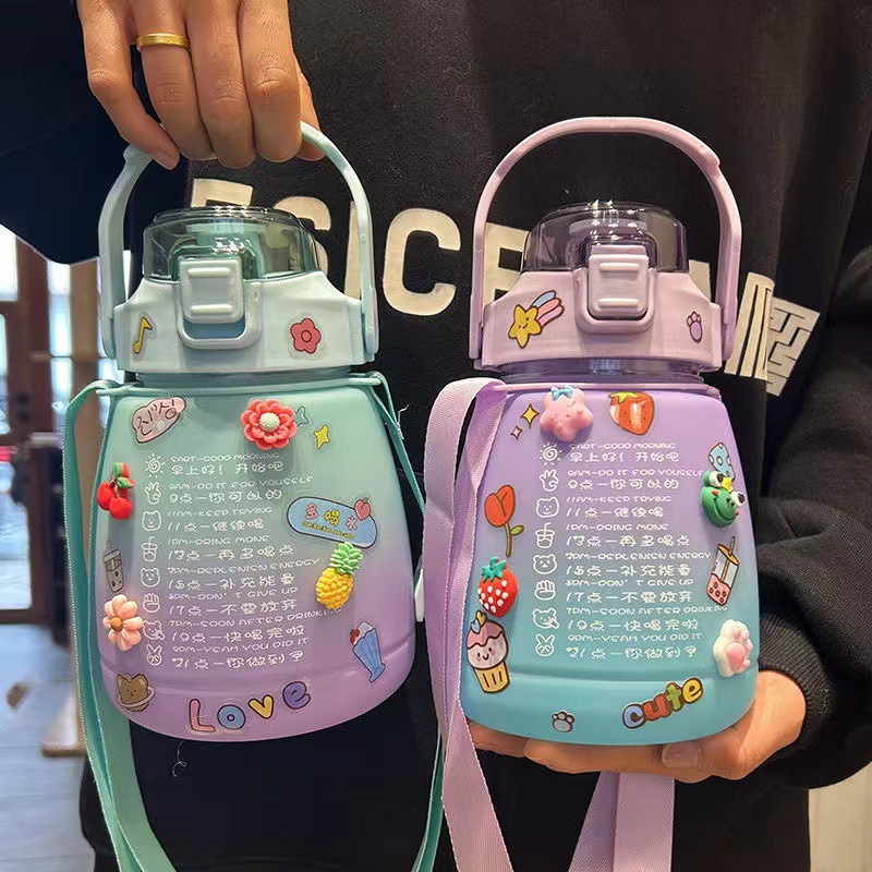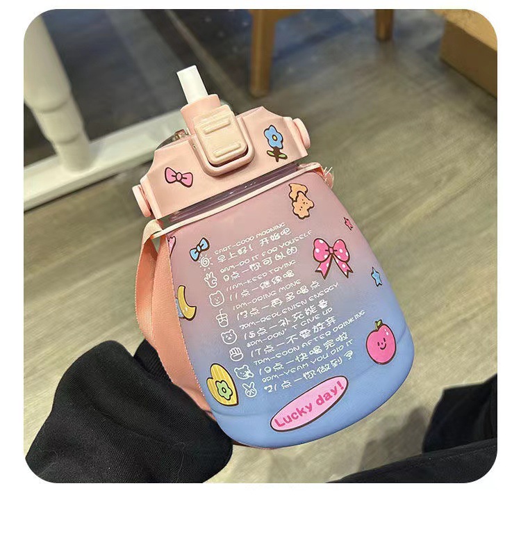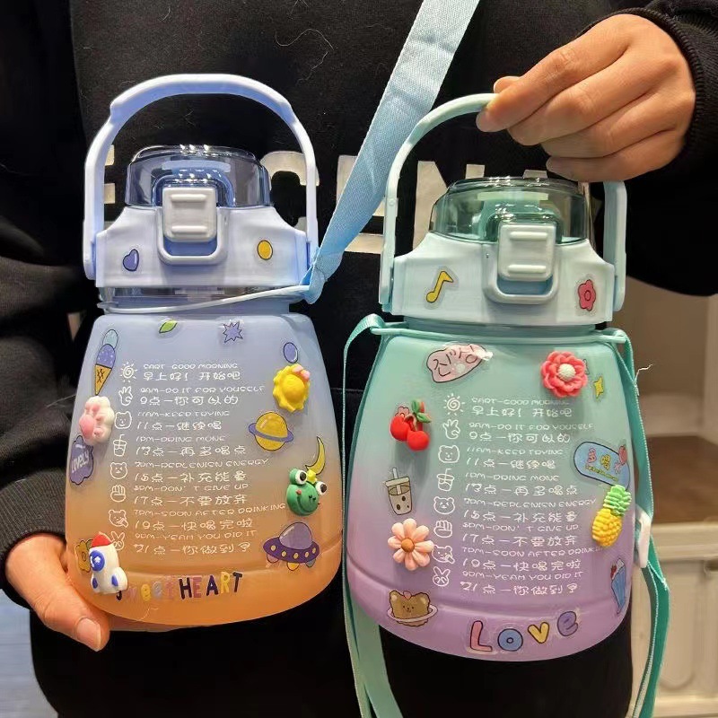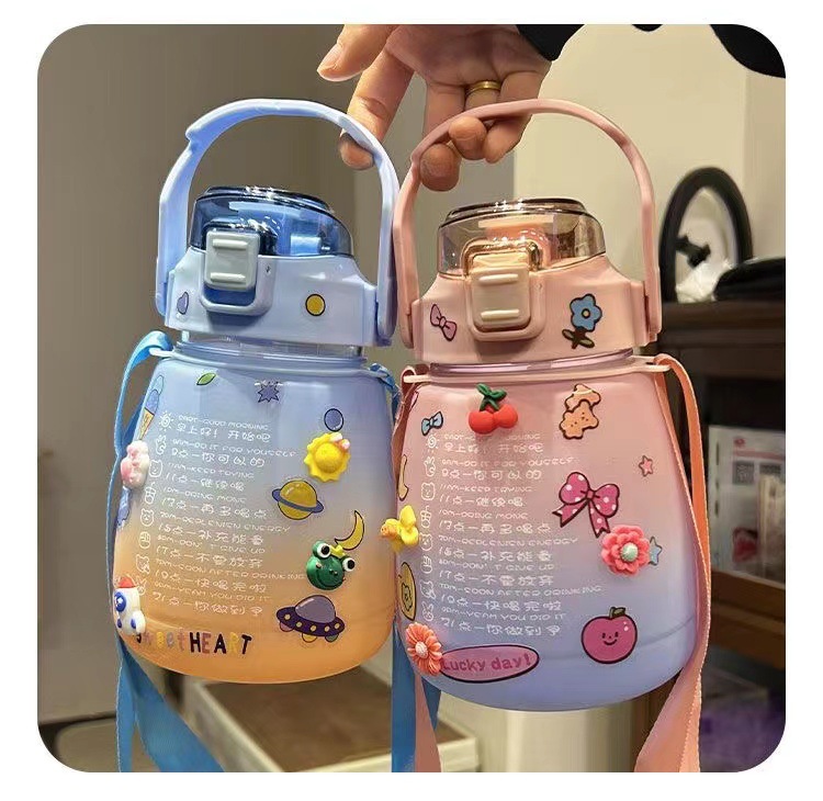 大肚杯双色渐变运动吸管水壶可爱网红耐高温随手杯便携手提式水杯