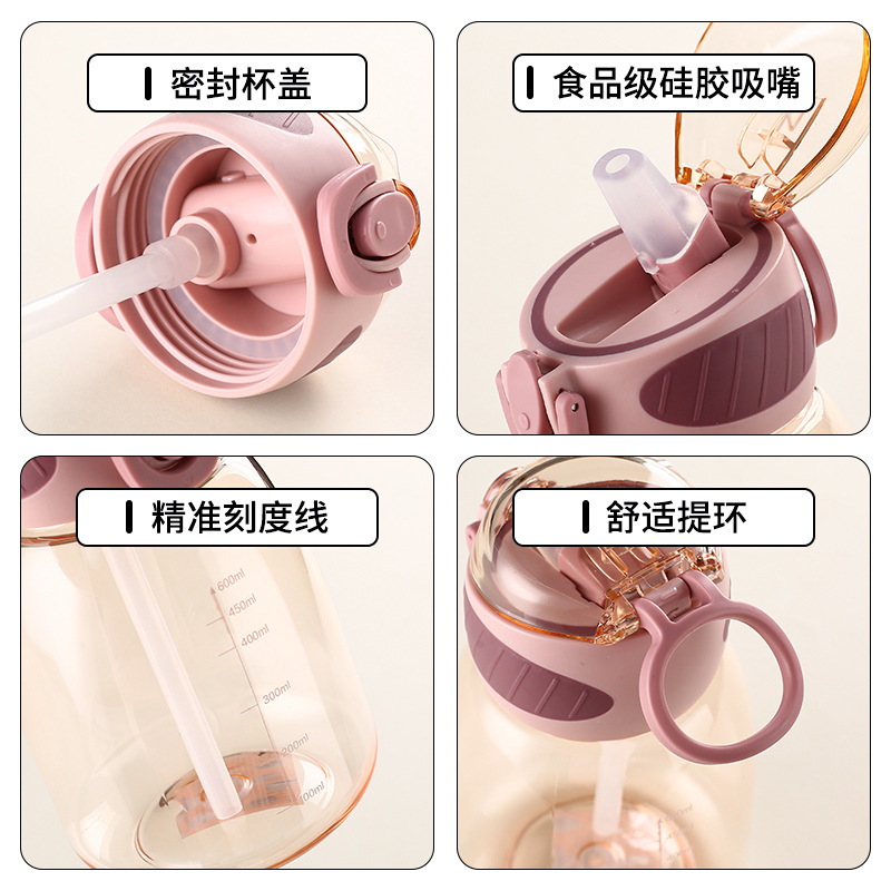 夏季儿童吸管水杯高颜值大容量便携塑料杯子批发简约户外专用水壶