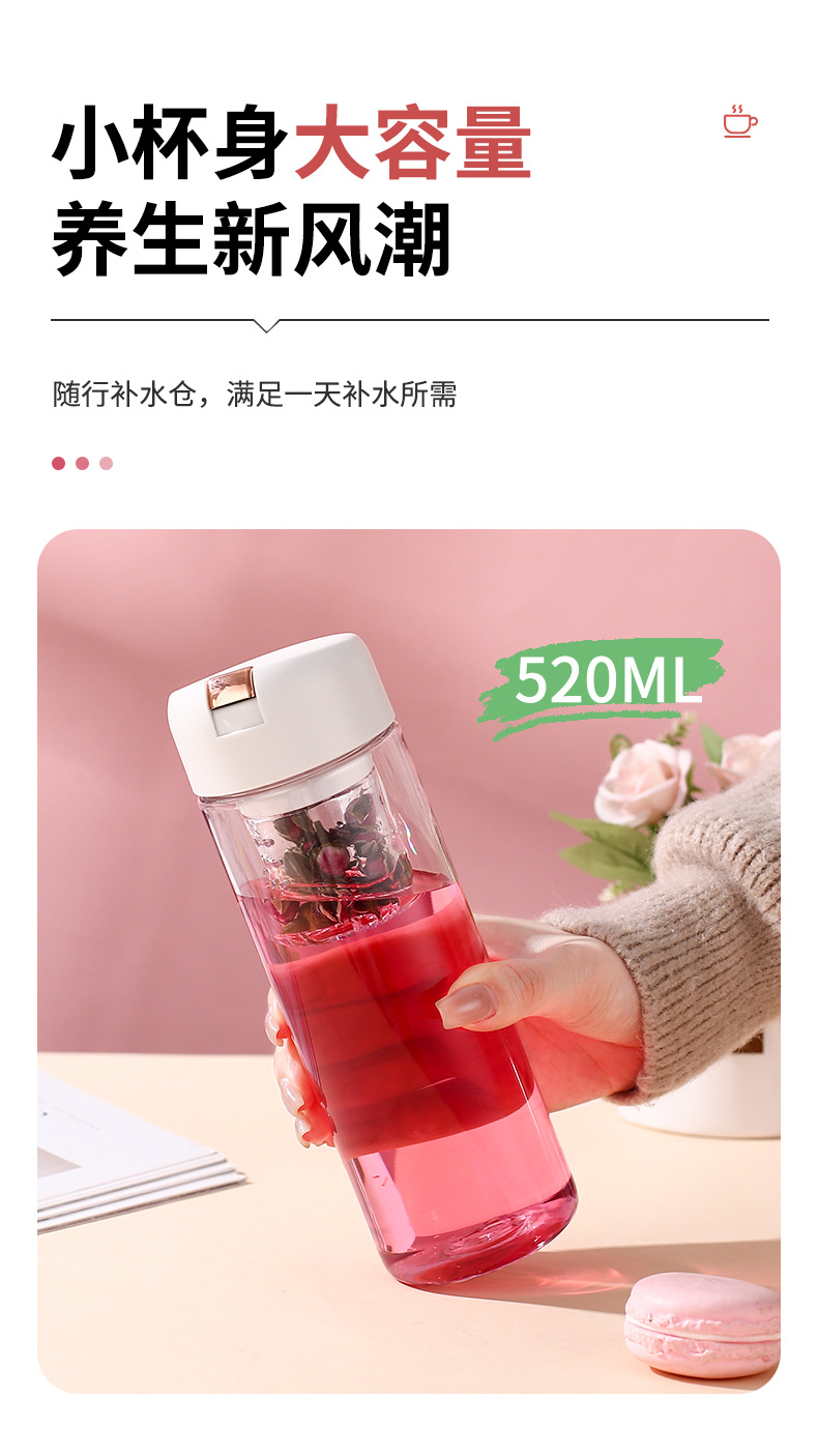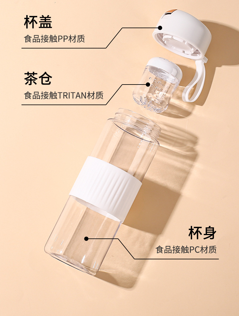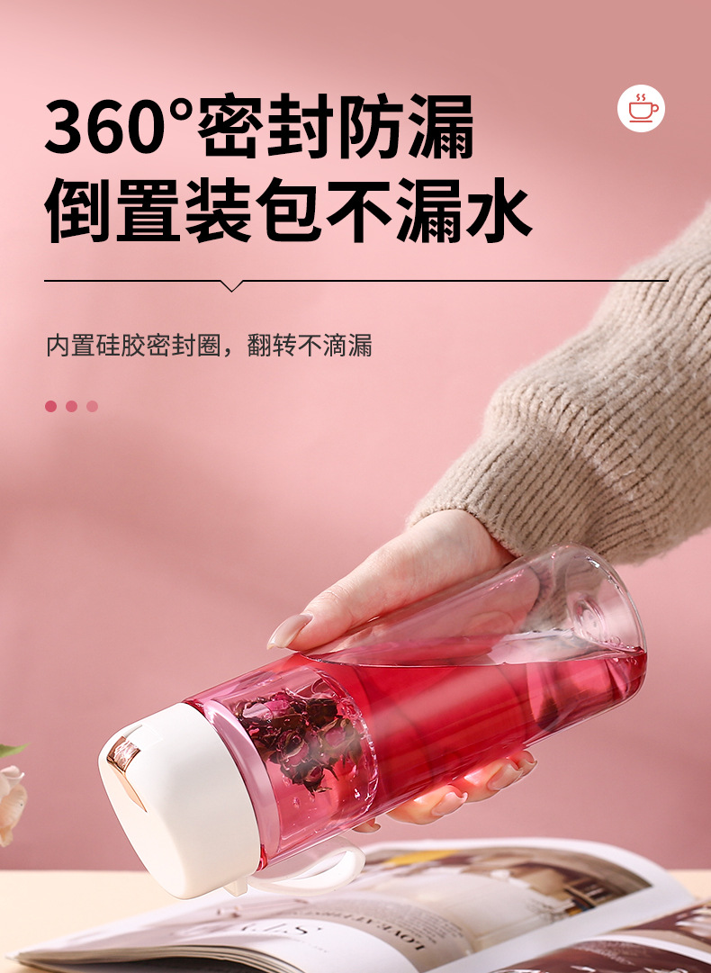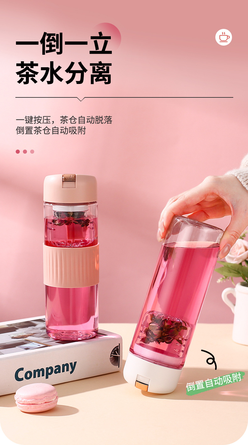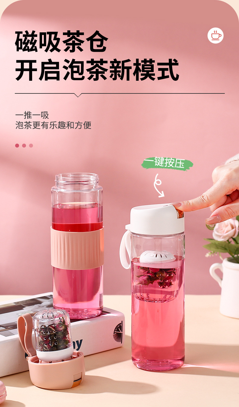 磁吸茶水分离泡茶杯子批发大容量耐高温礼品便携高颜值塑料水杯