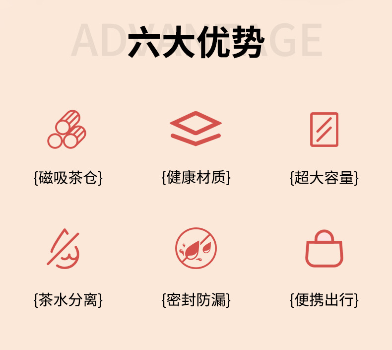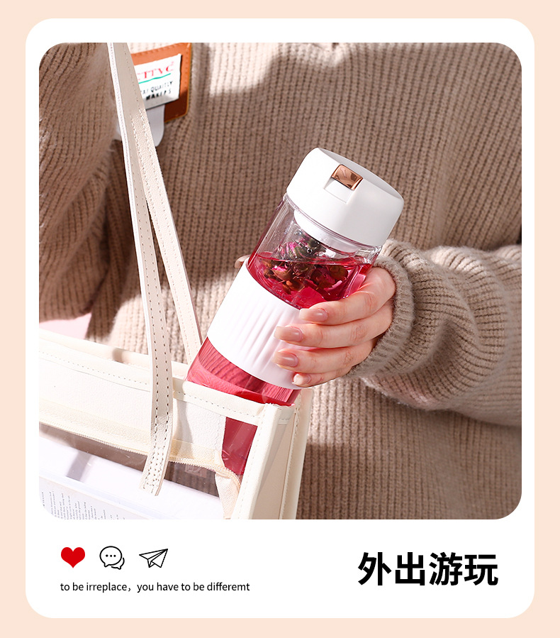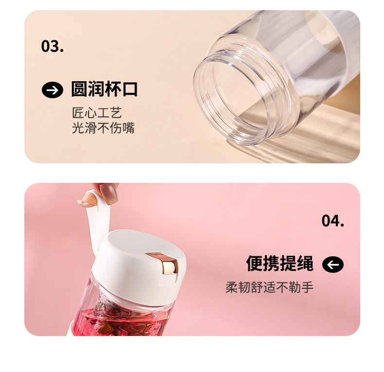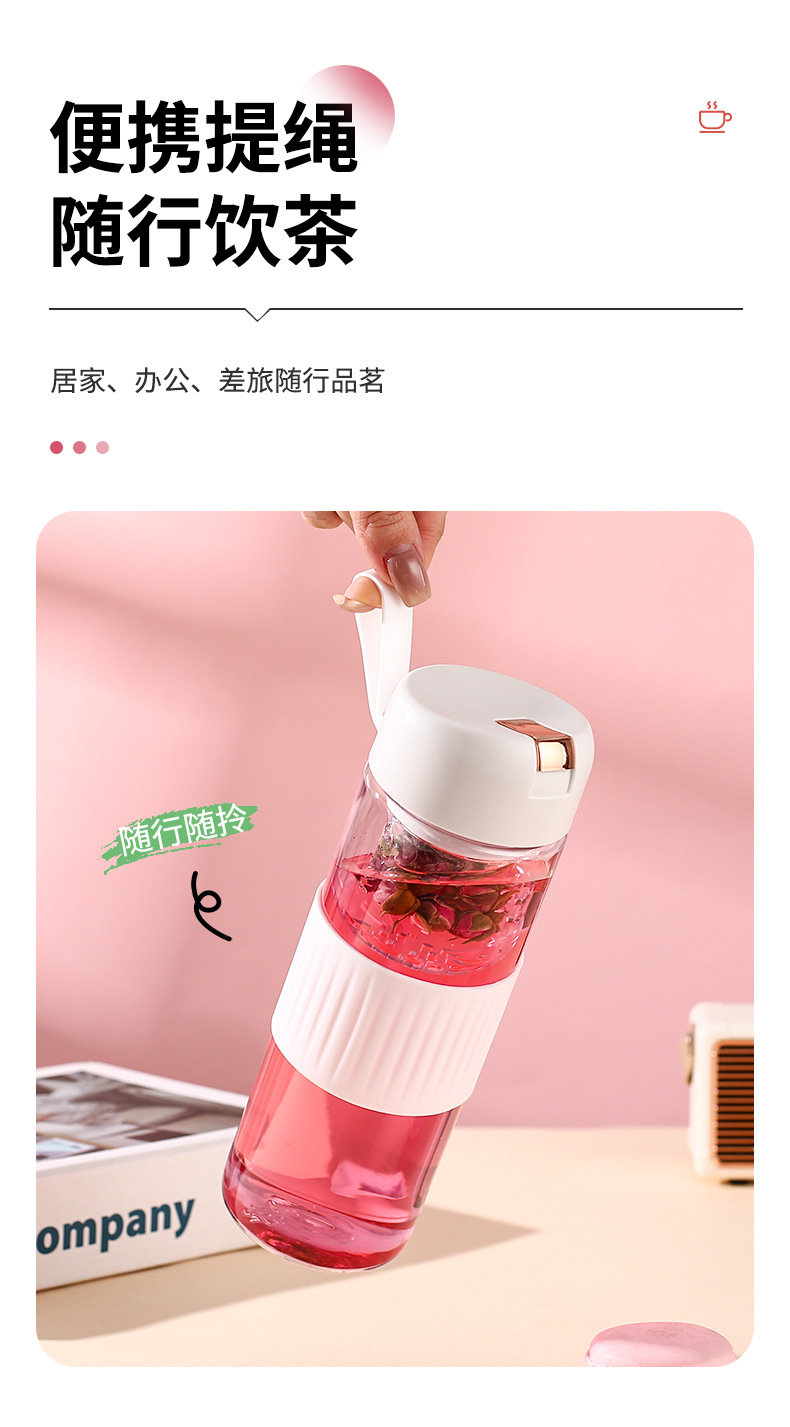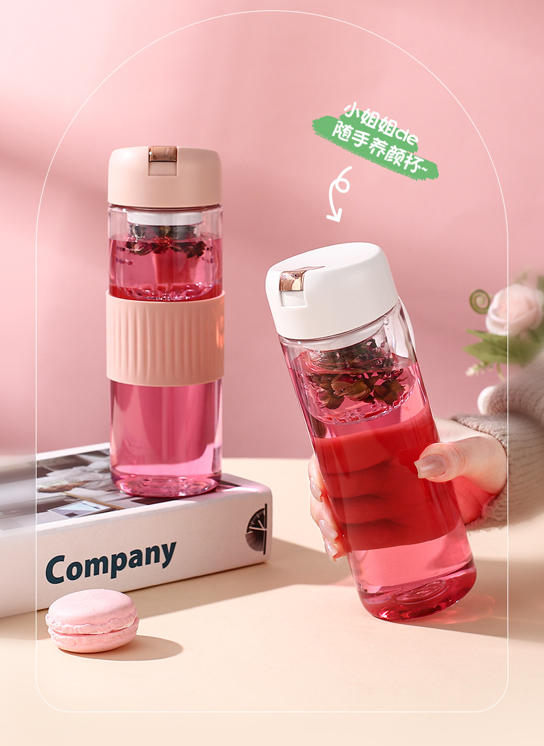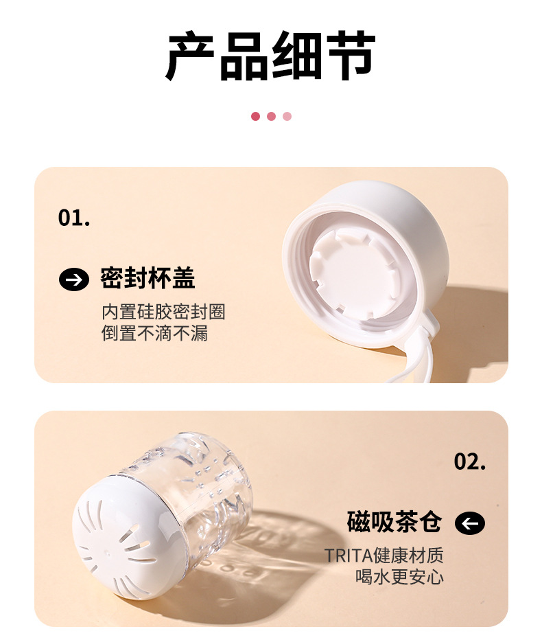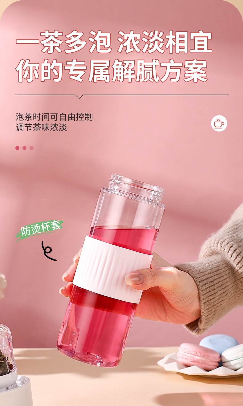 磁吸茶水分离泡茶杯子批发大容量耐高温礼品便携高颜值塑料水杯
