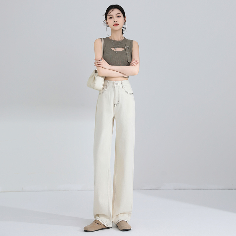 YKK四季基础百搭款夏季新款高腰窄版直筒牛仔裤女修身长裤子