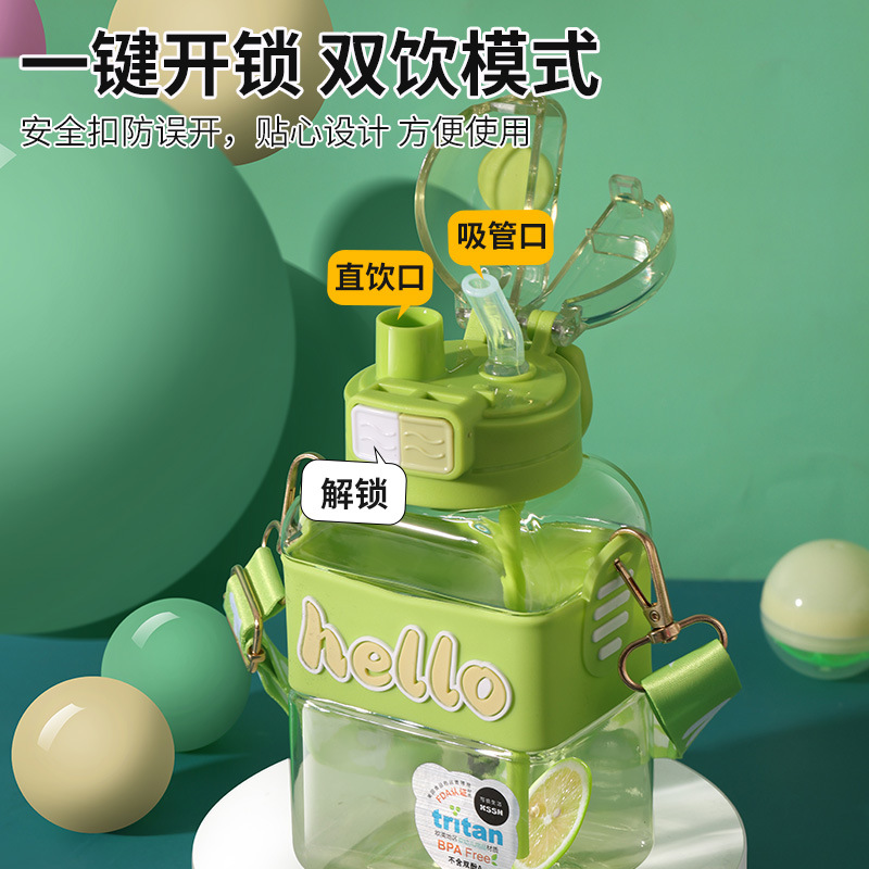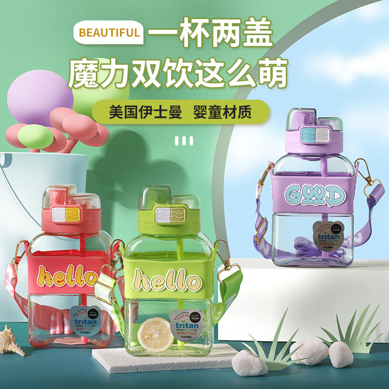 大容量运动水杯女夏季健身水壶食品级tritan耐高温塑料双饮分仓杯