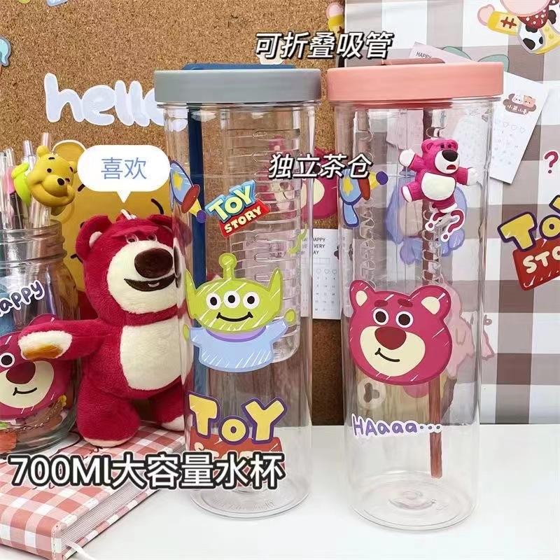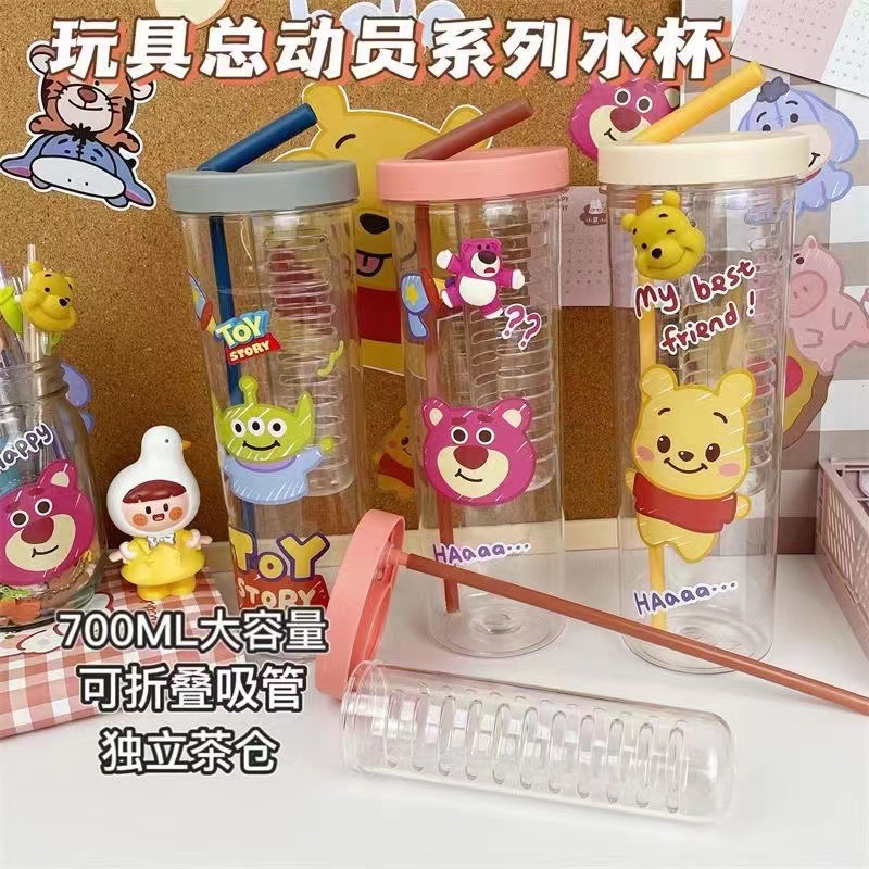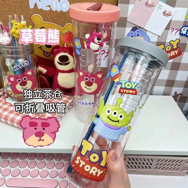 大容量水杯可爱女折叠吸管便携随手杯高颜值花茶杯干湿分离塑料杯