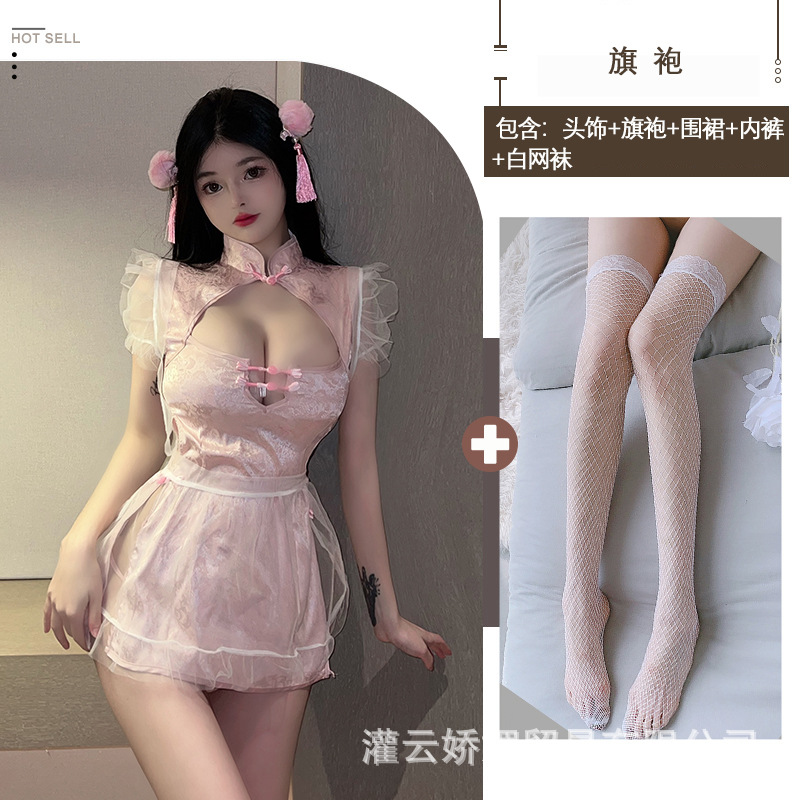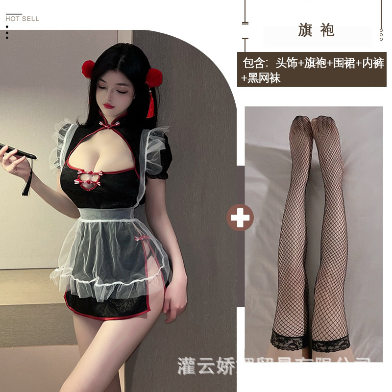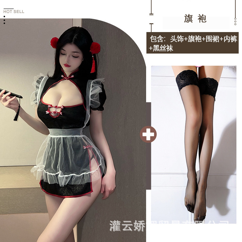 兮欢媚兰情趣内衣性感镂空复古盘扣旗袍制服床上诱惑火辣套装3309