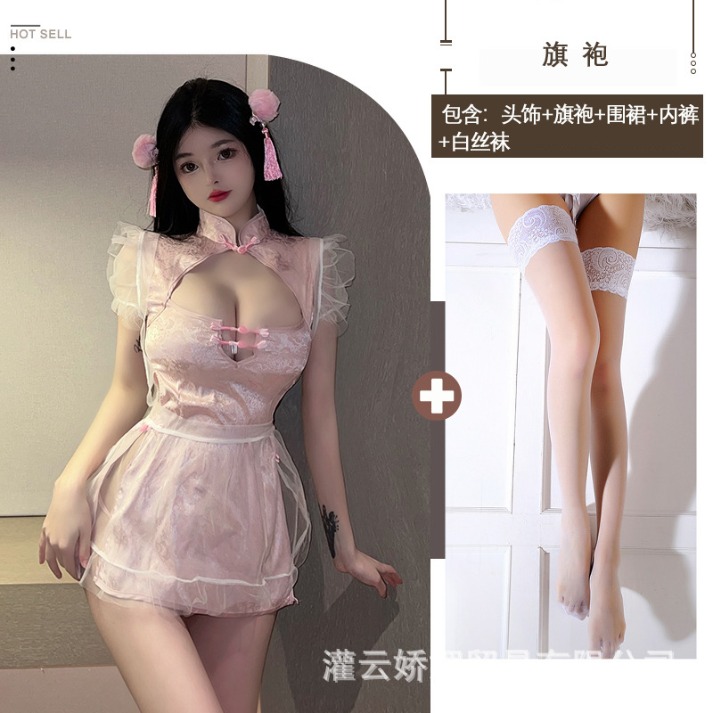 粉旗袍【旗袍+围裙+T裤】头饰另拍