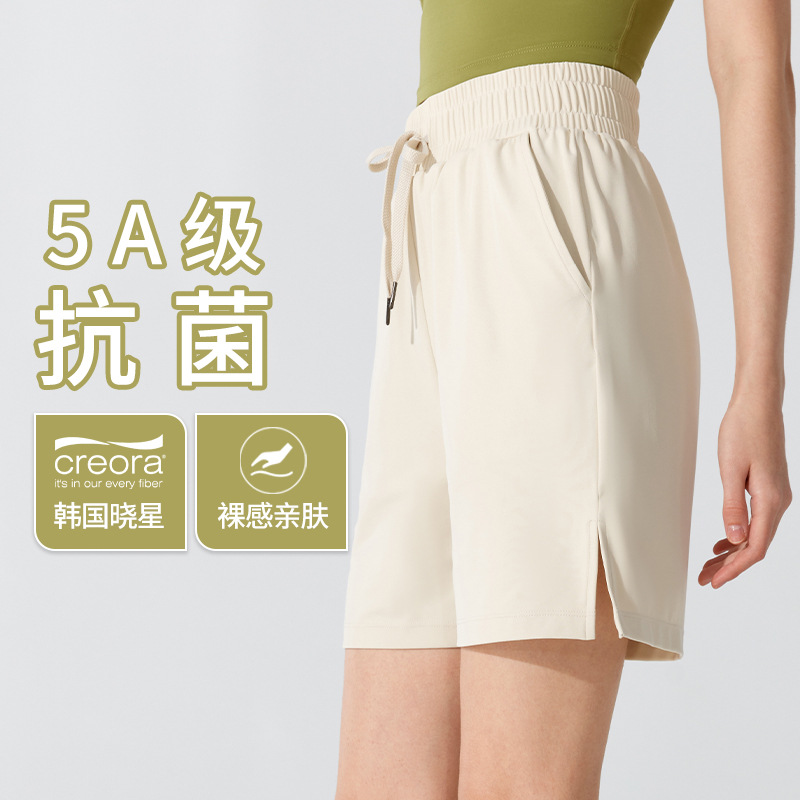 5A级抗菌运动短裤女夏季薄款绿色宽松显瘦中裤休闲裤阔腿五分热裤