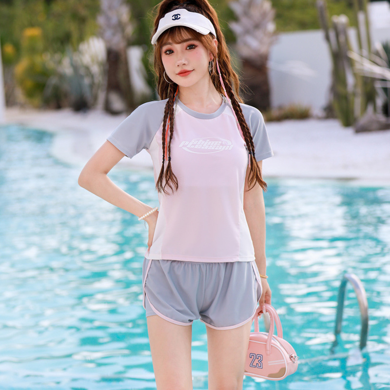 运动游泳衣女分体平角保守显瘦遮肚韩两件套少女学生训练温泉泳装