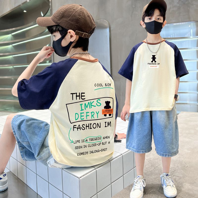 男童拼接短袖T恤夏装童装新款儿童中大童纯棉休闲男孩上衣潮