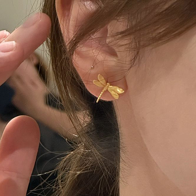 小红书同款迷你灵动蜻蜓耳钉磨砂质感高级感唯美清新文艺风耳饰女