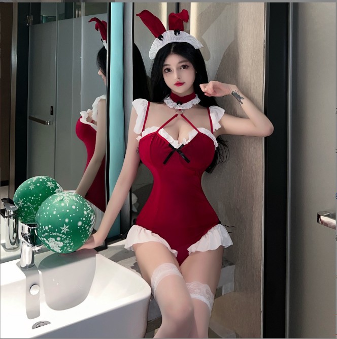 纯欲圣诞制服情趣内衣诱惑性感红色开档免女郎套装连衣裙激情诱惑