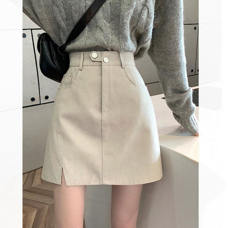 高腰开叉小皮裙女新款时尚遮胯显瘦a字短裙秋季包臀半身裙