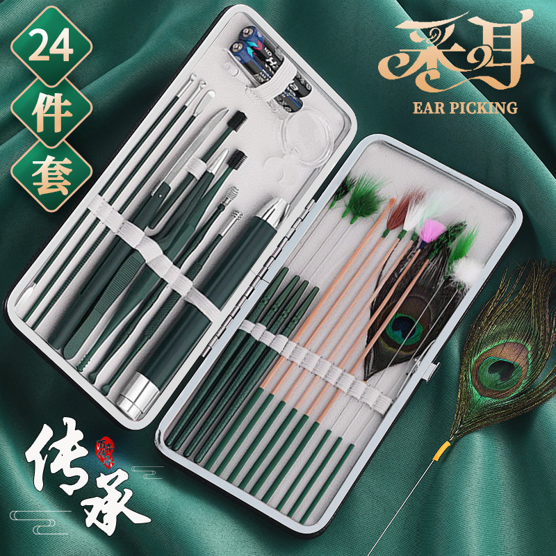 采耳工具套装发光挖耳勺鹅毛棒按摩耳道清洁耳朵掏耳勺工具套装