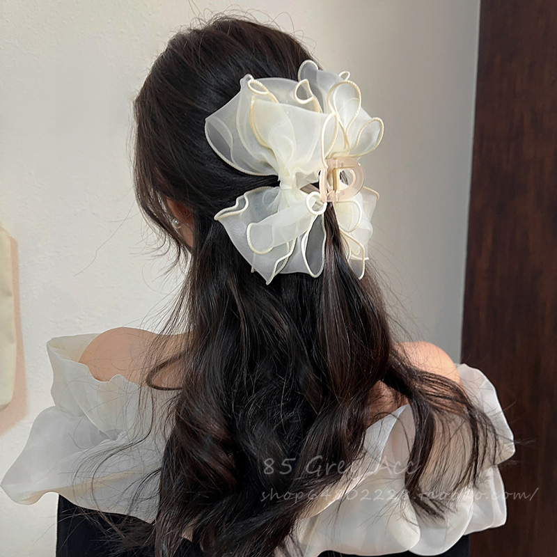 优雅气质网纱蝴蝶结发夹女春夏超仙公主头鲨鱼夹高级感后脑勺抓夹