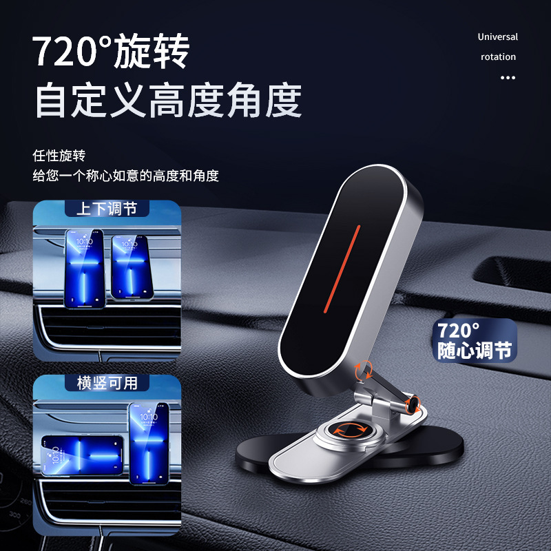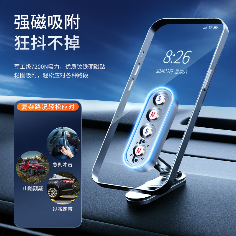 车载磁吸手机支架汽车仪表台导航防滑粘贴可折叠旋转隐藏金属支架