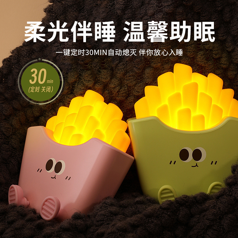 薯小条硅胶小夜灯充电卧室床头睡眠拍拍伴睡台灯创意礼物生日可爱