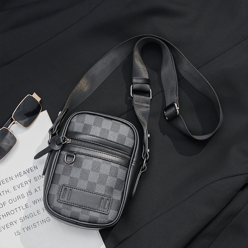 男士竖款手机包经典简约格纹单肩包小包街头户外情侣挎包