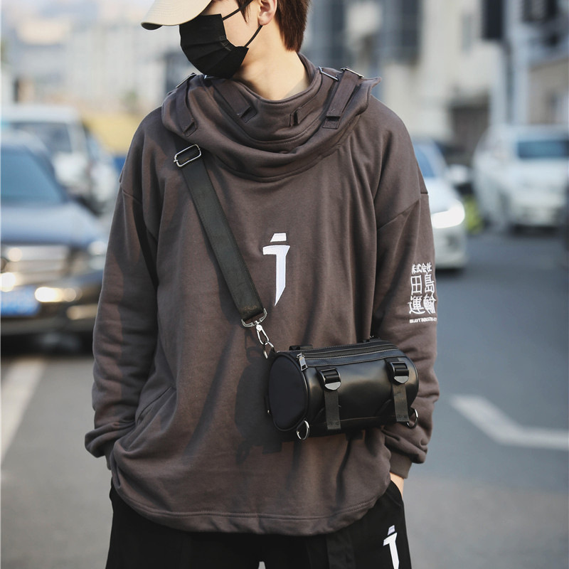 纯色圆筒单肩包大容量防泼水情侣斜挎包大容量潮酷街头男背包跨境