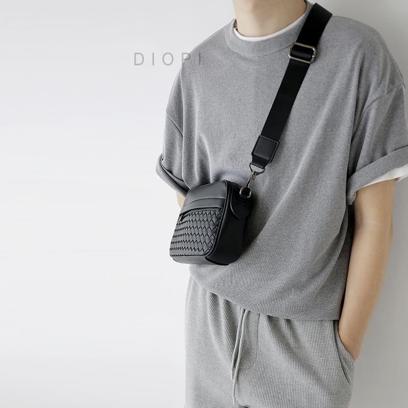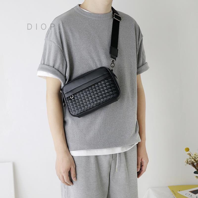 新款编织质感斜挎包男士街头方形小包ins潮流便捷手机单肩包