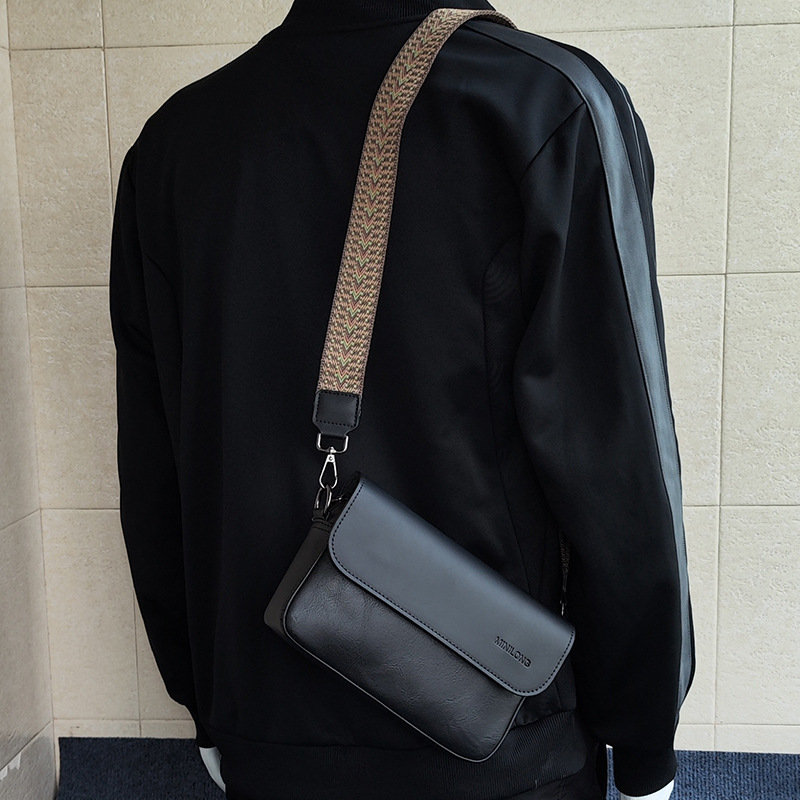 新款韩版个性斜挎单肩包 休闲复古宽型彩带斜跨小包 女手机包
