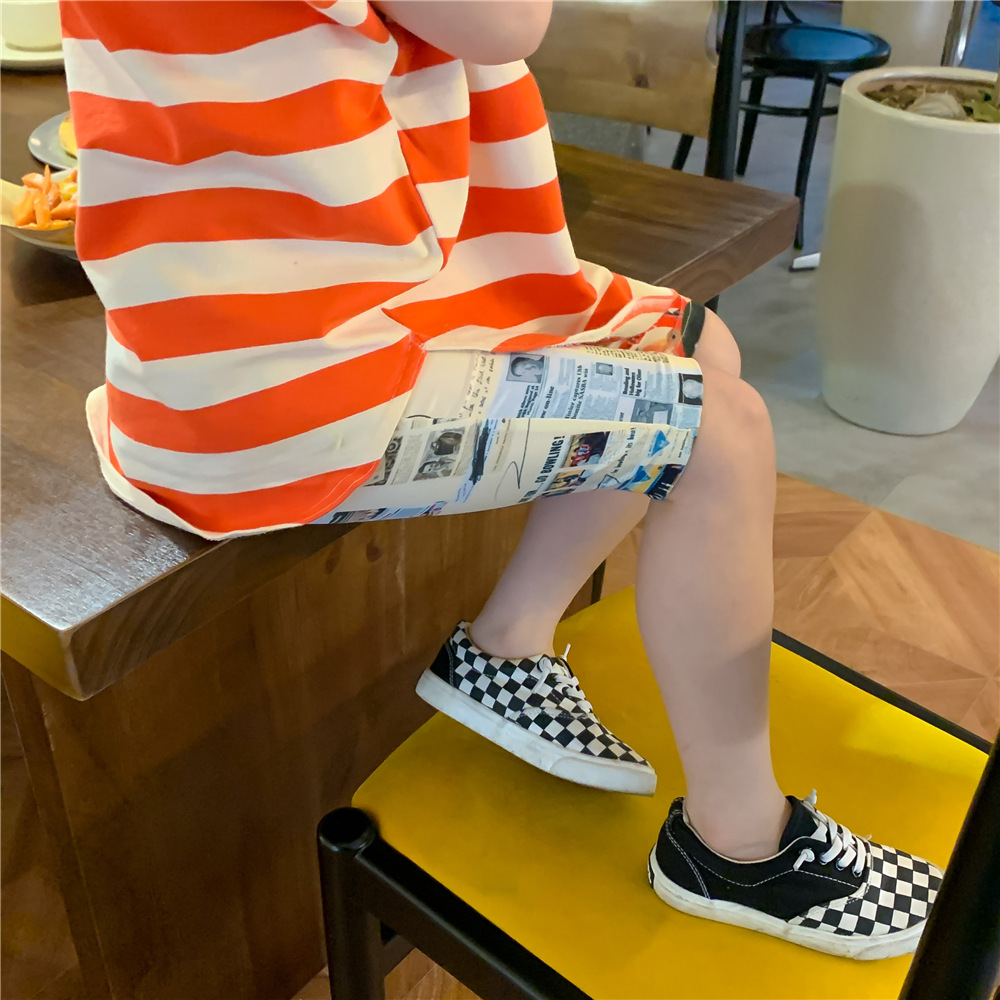 夏季新款童装 儿童洋气五分骑行裤女童韩版报纸洋气打底中裤