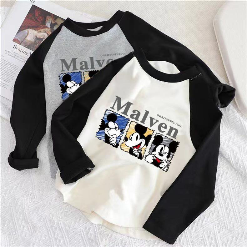 春秋新款儿童洋气纯棉长袖打底t恤男女童插肩宝宝卡通印花上衣潮