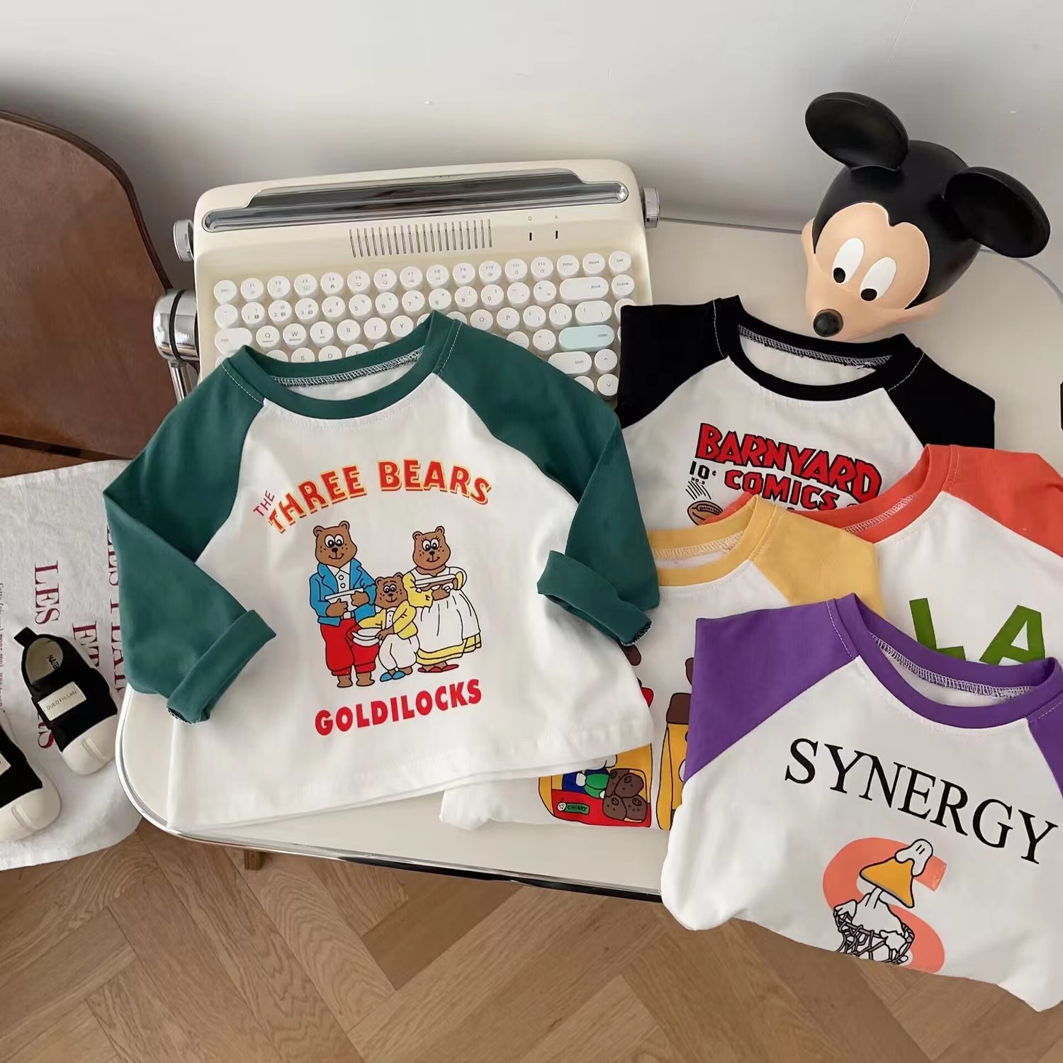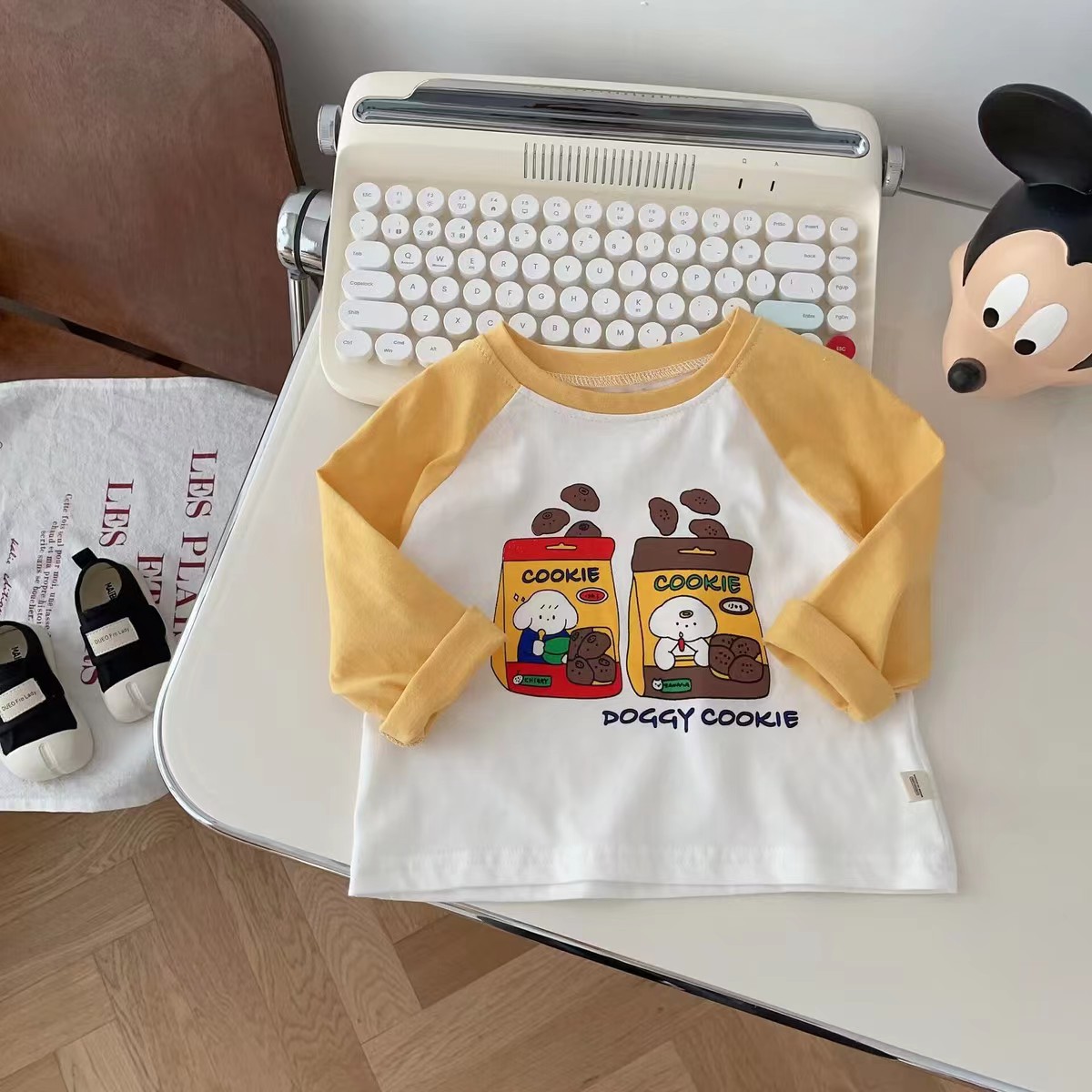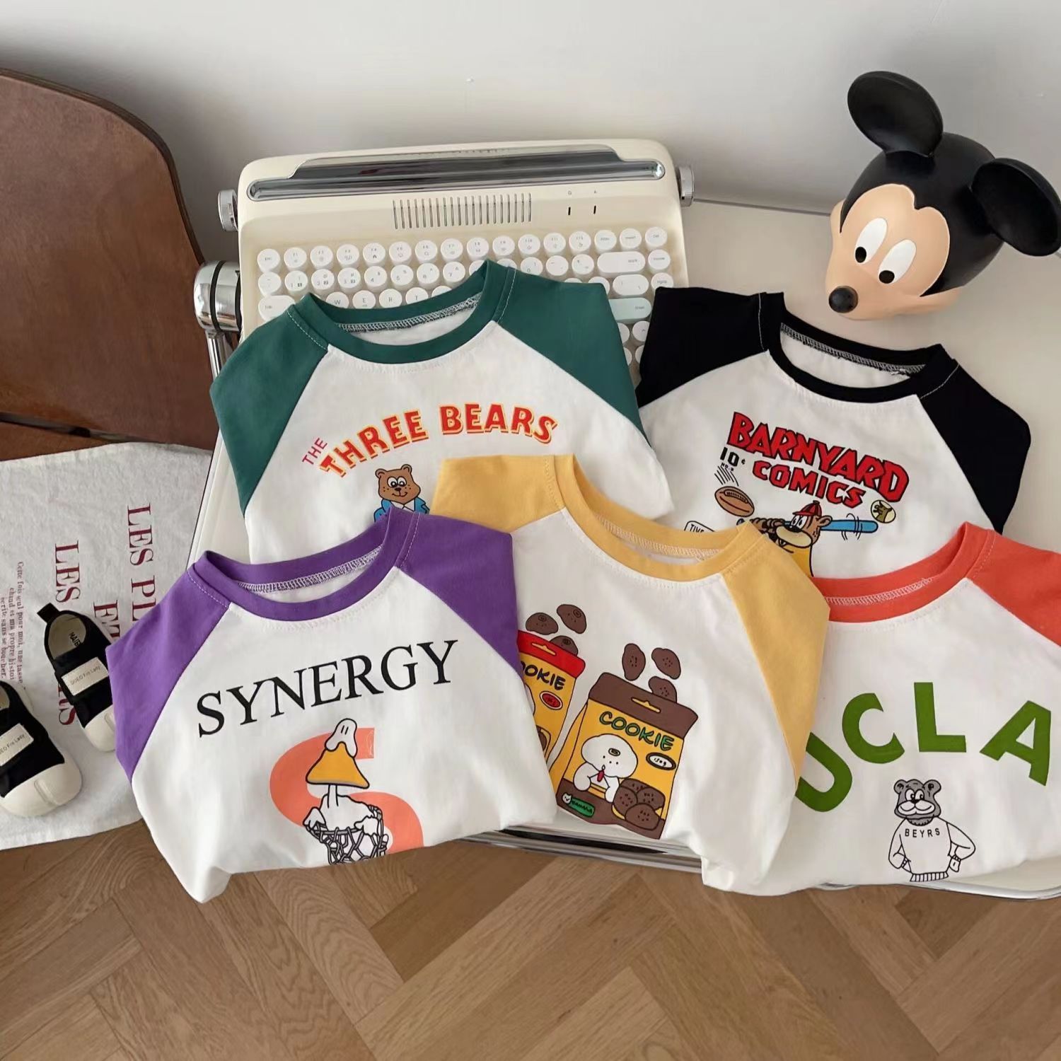 儿童卡通纯棉打底衫春秋季男女童韩版长袖T恤宽松宝宝上衣撞色T