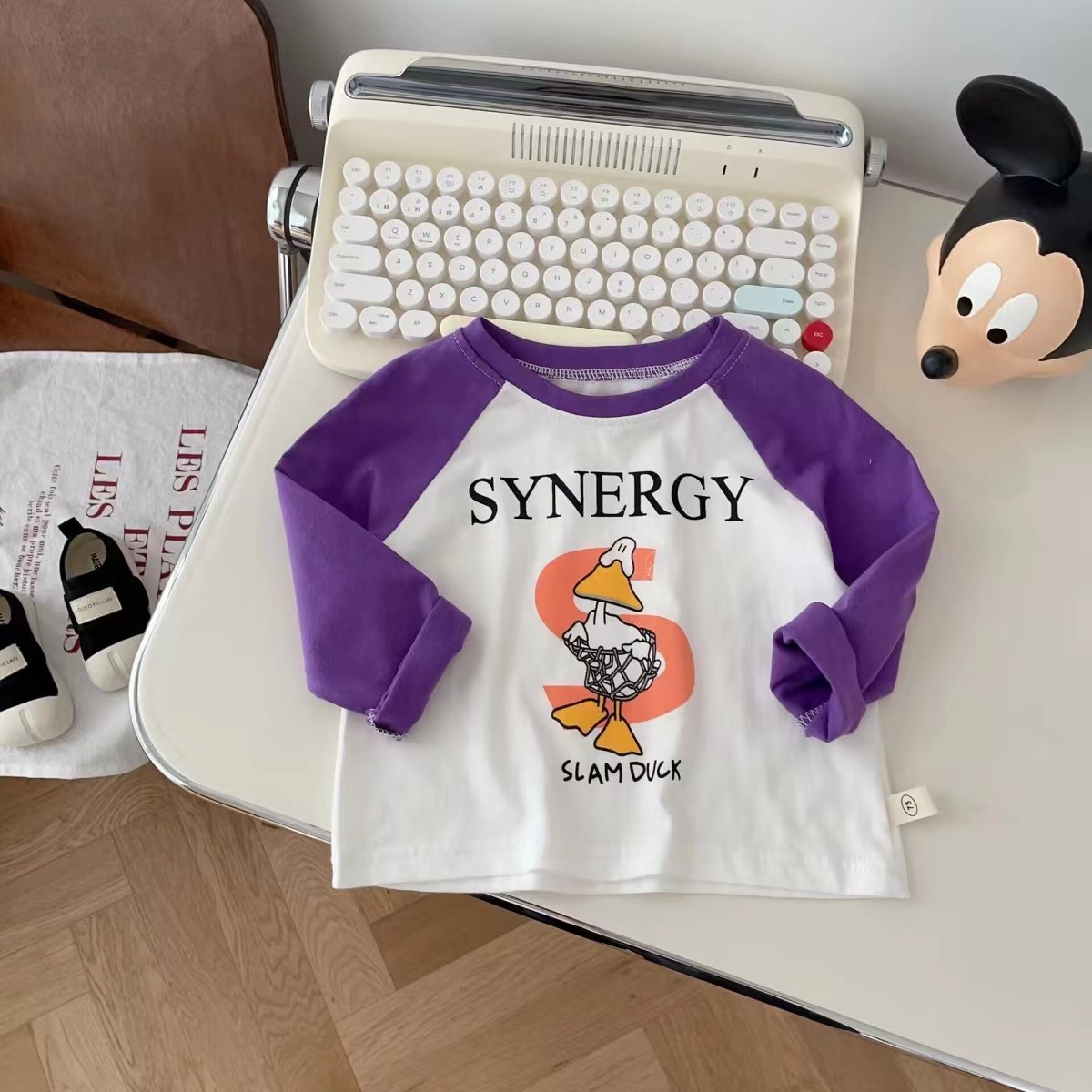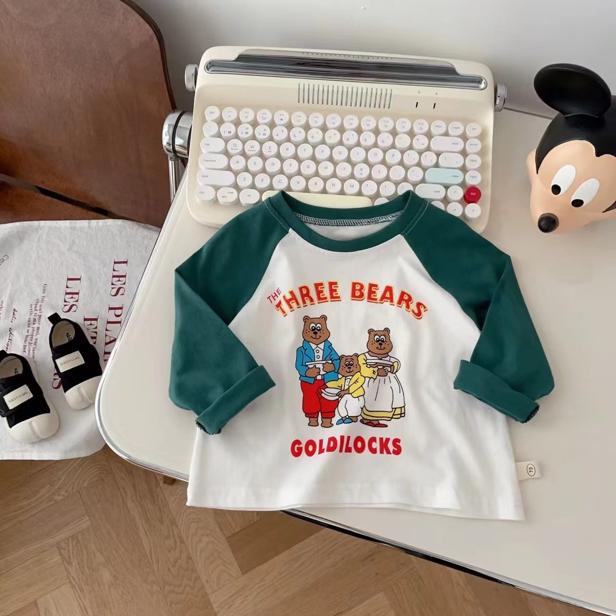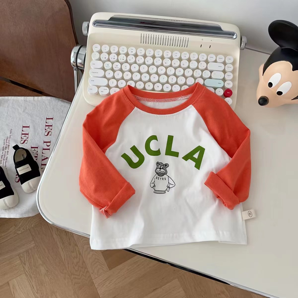 儿童卡通纯棉打底衫春秋季男女童韩版长袖T恤宽松宝宝上衣撞色T