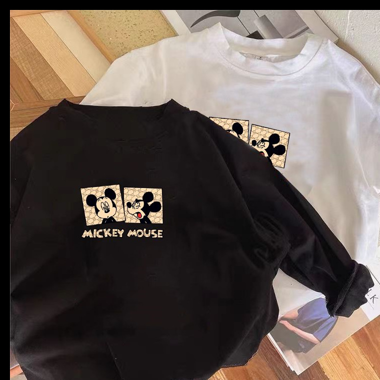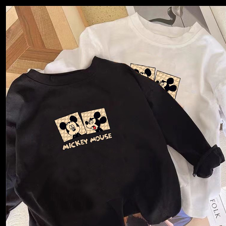 春秋儿童新款男女童长袖纯棉卡通t恤中小童米奇洋气上衣打底衫潮