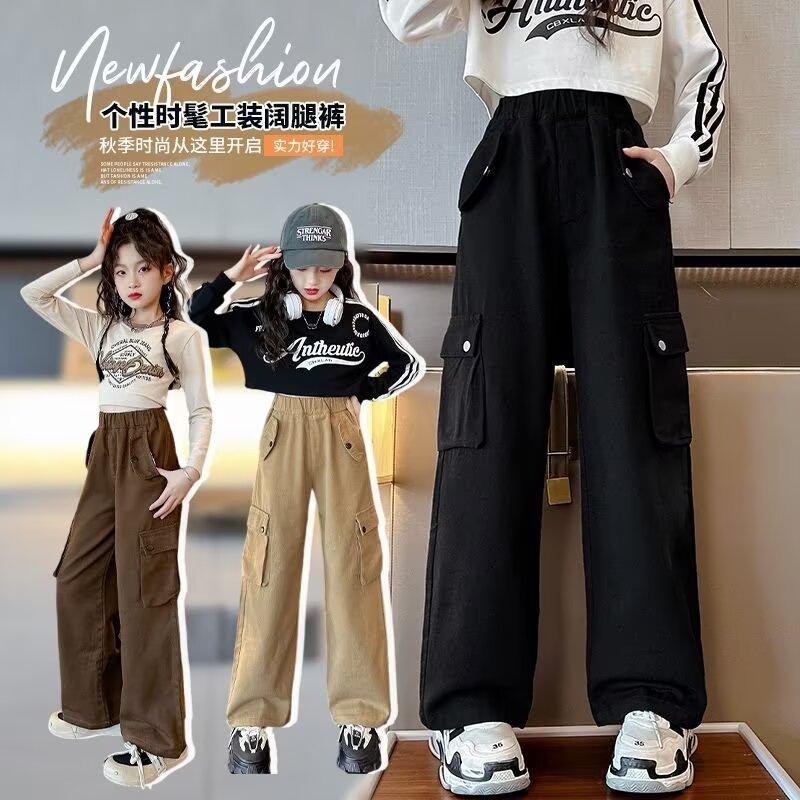 女童休闲裤春秋季运动裤新款时髦女孩中大童工装裤宽松潮裤子