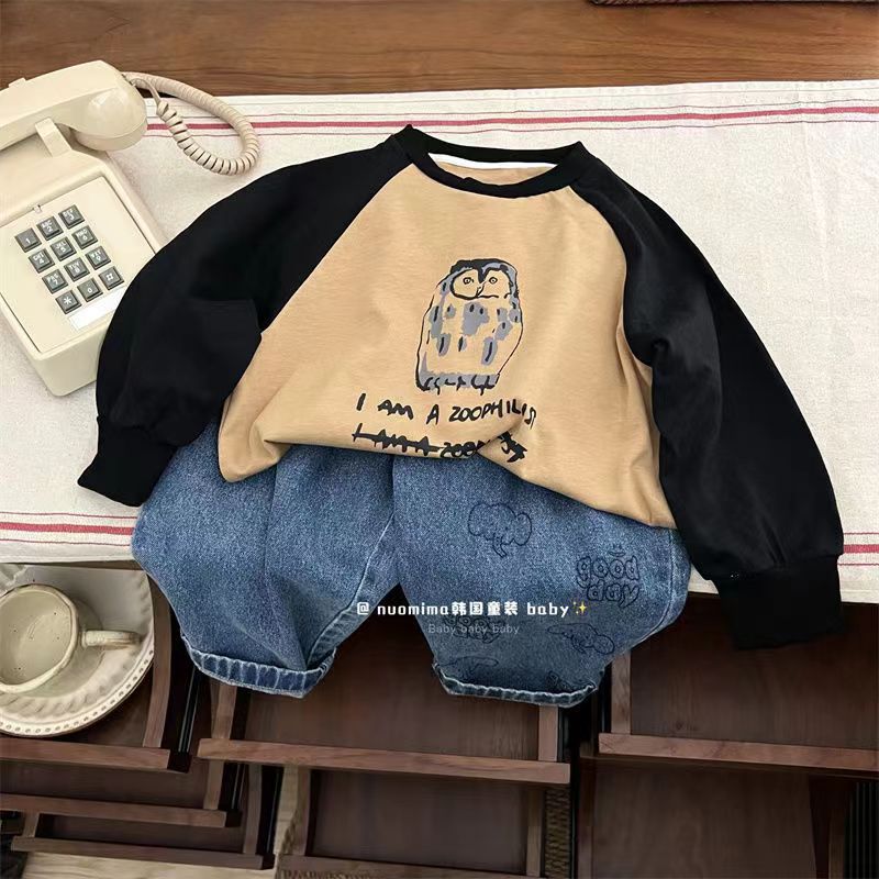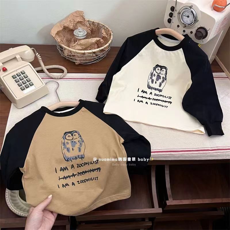 纯棉儿童长袖薄款t恤春秋季新款男女宝宝时尚印花卡通宽松打底衫