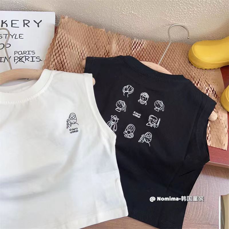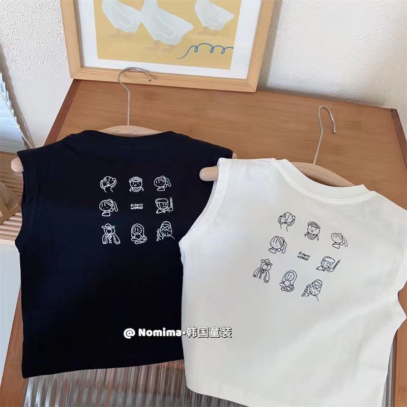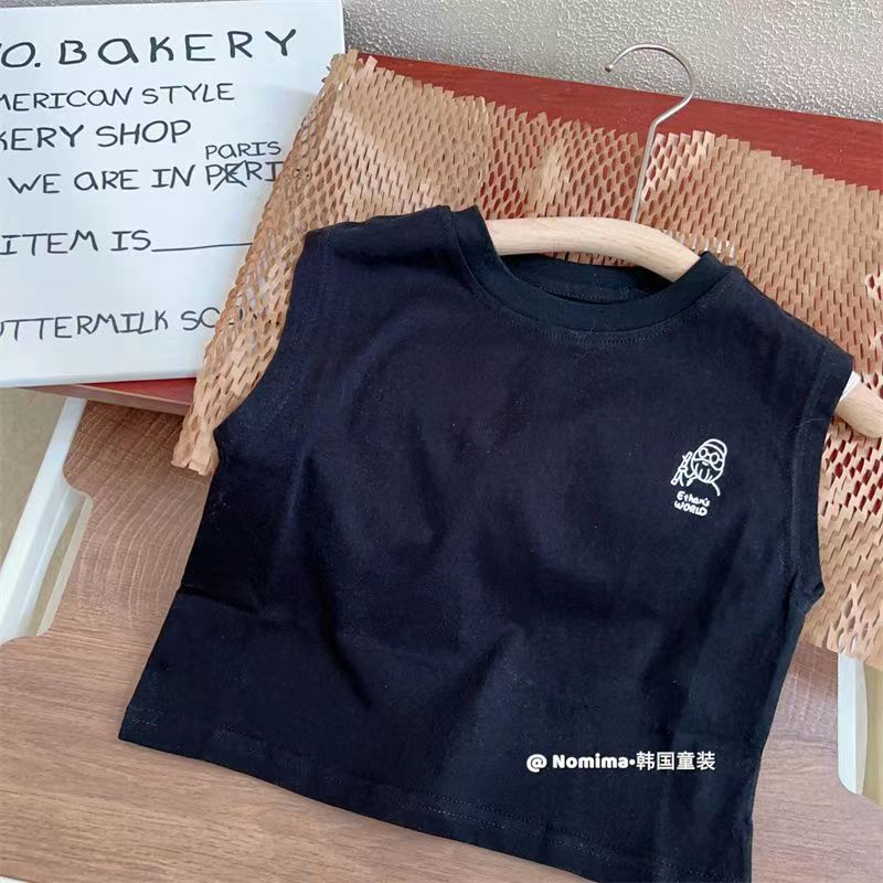 夏季新款韩系宝宝100%纯棉无袖t恤宽松百搭背心儿童潮款上衣薄款T