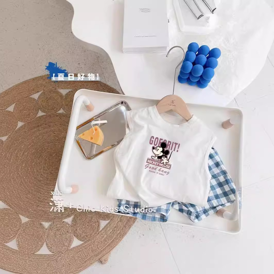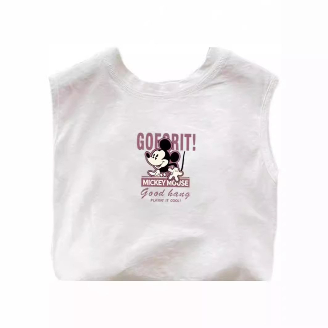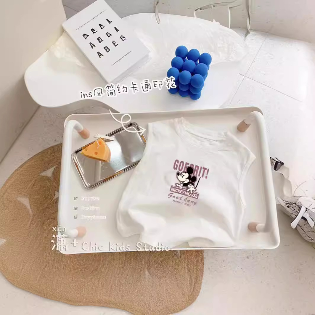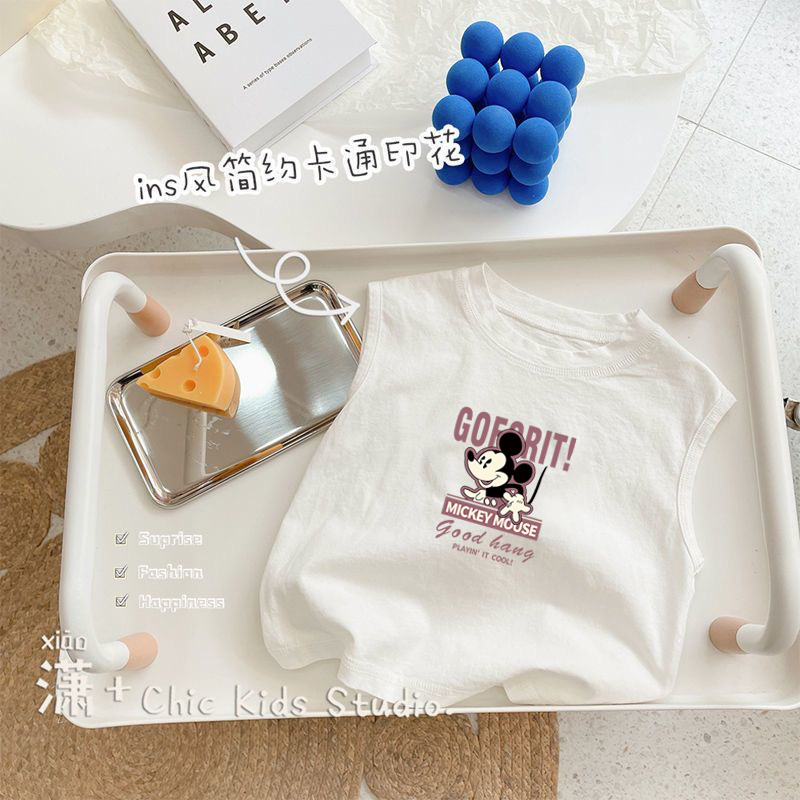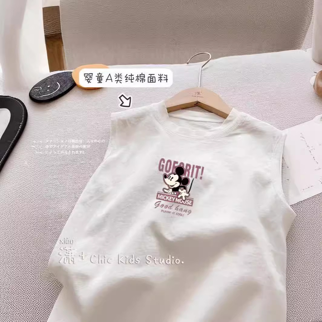 纯棉背心儿童夏季无袖卡通男女童圆领印花中小童洋气百搭白色上衣