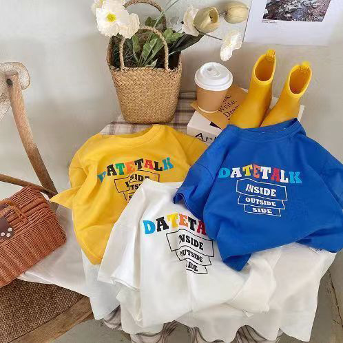 童装短袖T恤休闲上衣夏季新款男女童卡通字母印花宝宝打底衫