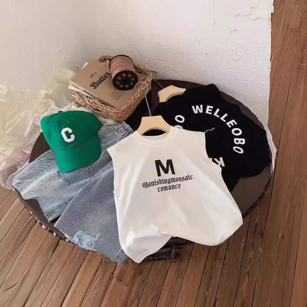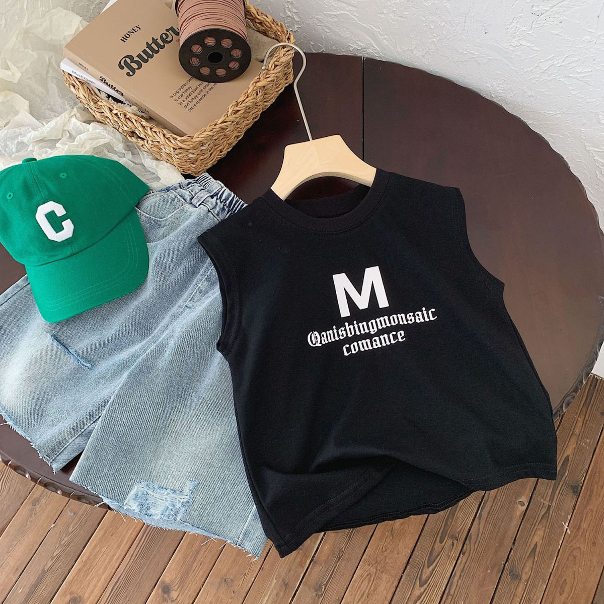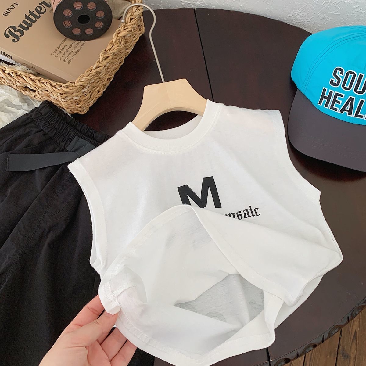 100%纯棉童装无袖背心t恤夏季新款男童简约字母印花儿童宝宝上衣